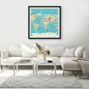 Affiche dans un cadre noir - Poster - Carte du monde avec des illustrations d'animaux - 70x50cm - De bons voisins - Décoration murale moderne pour le salon et la chambre ARTTOR