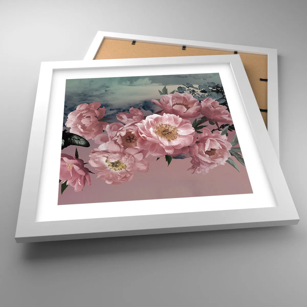 • Fleur de pivoine, papillon, fleurs, Botanique, Fleurs, Nature, Pour le bureau, Pour le bureau, Pour la salle à manger, Pour le hall, Pour le salon, Pour la chambre, Rose, Gris, Carré