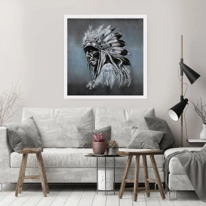 Affiche - Poster - Portrait d'un chef indien portant une coiffe de plumes sur fond gris - 50x70cm - Retour aux sources - Décoration murale moderne pour le salon et la chambre ARTTOR