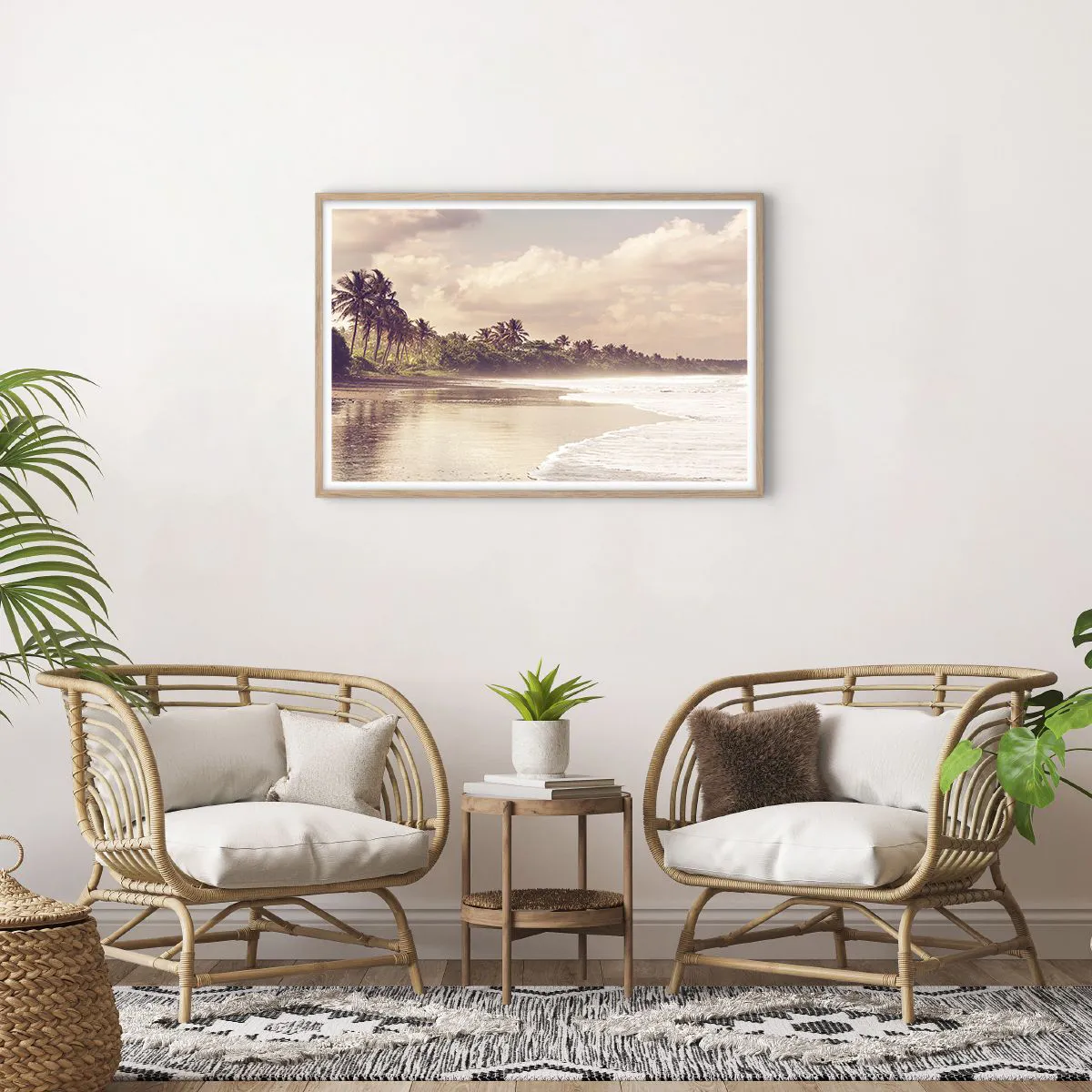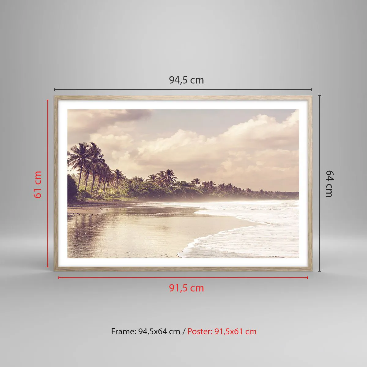 Affiche dans un chêne clair - Poster - La caresse des vagues - 91x61 cm