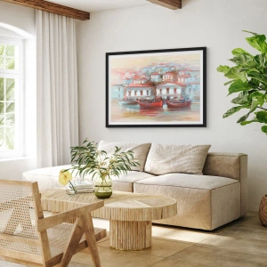 Affiche dans un cadre noir - Poster - Petite ville heureuse - 40x30 cm