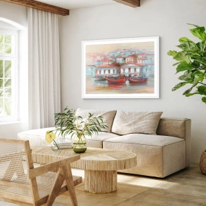 Affiche dans un cadre blanc - Poster - Petite ville heureuse - 91x61 cm