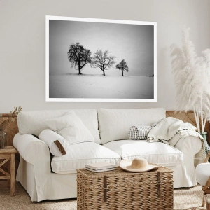 Affiche - Poster - Trois arbres dans un champ enneigé en noir et blanc - 50x70cm - A quoi rêvent-ils? - Décoration murale moderne pour le salon et la chambre ARTTOR