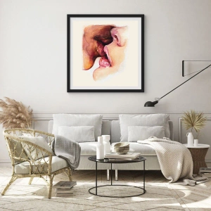 Affiche dans un cadre noir - Poster - Une aquarelle représentant un gros plan d'un visage - 70x50cm - Comme le jour et la nuit, la terre et le ciel - Décoration murale moderne pour le salon et la chambre ARTTOR