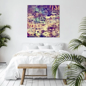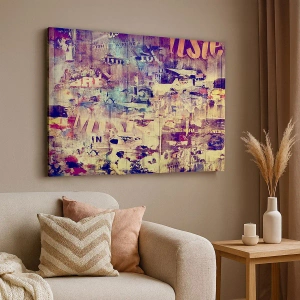 - Cette impression sur toile 70x50 cm présente un collage coloré de textes et de motifs abstraits. Idéale pour des intérieurs expressifs.