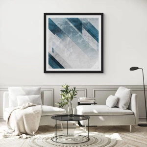 Affiche dans un cadre noir - Poster - Composition spatiale - mouvement gris - 50x40 cm