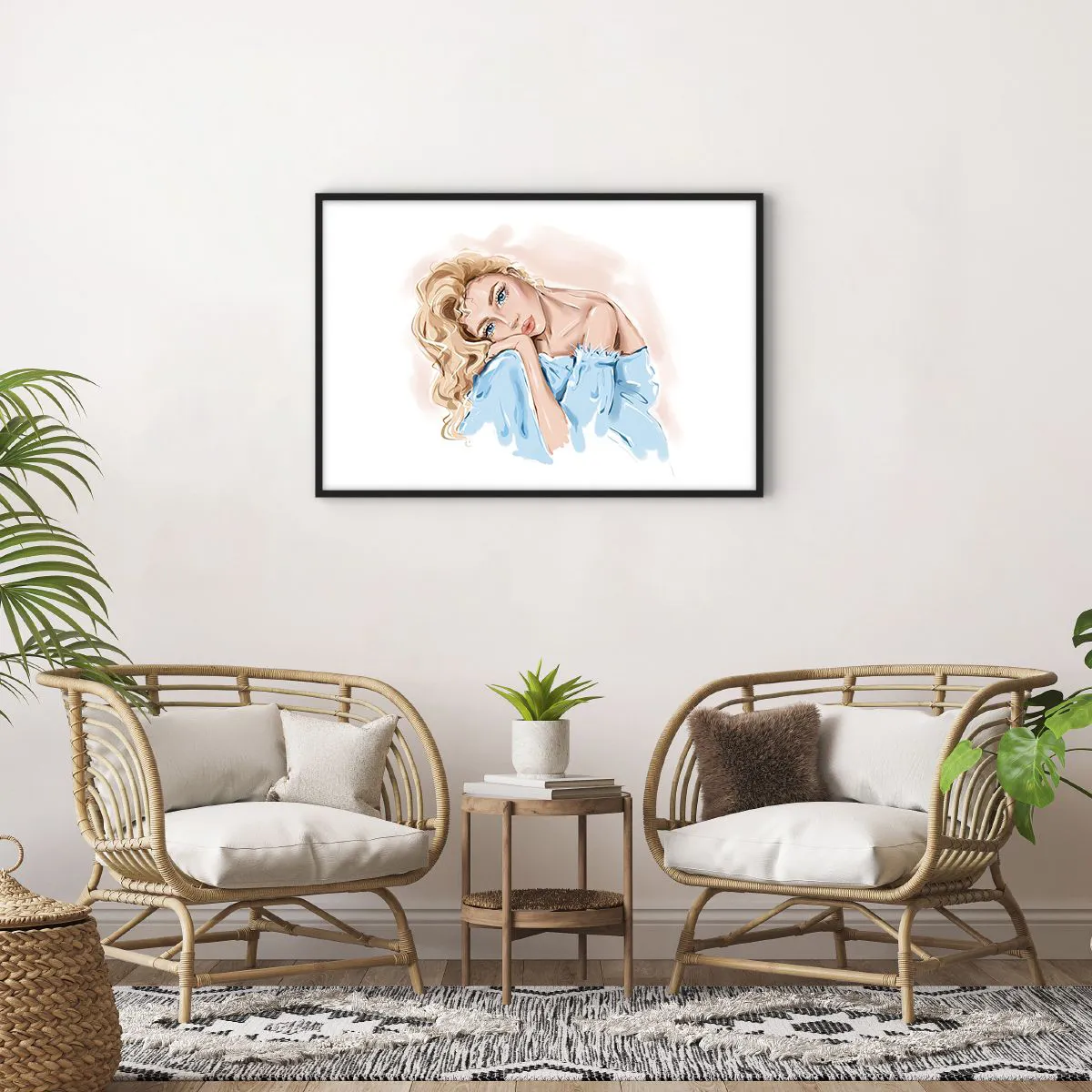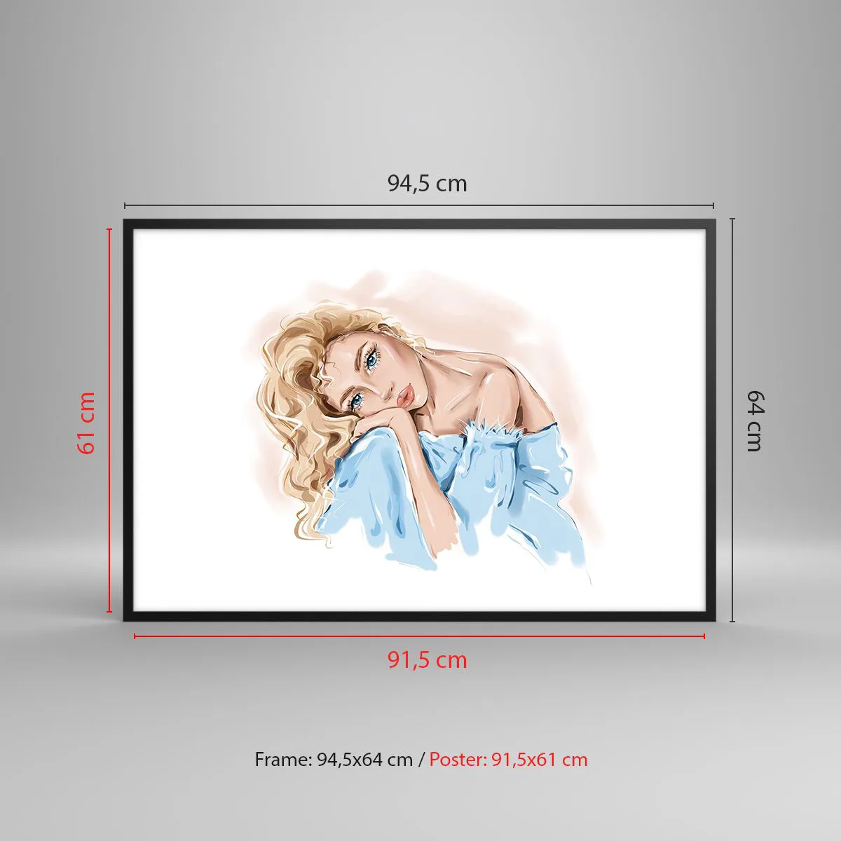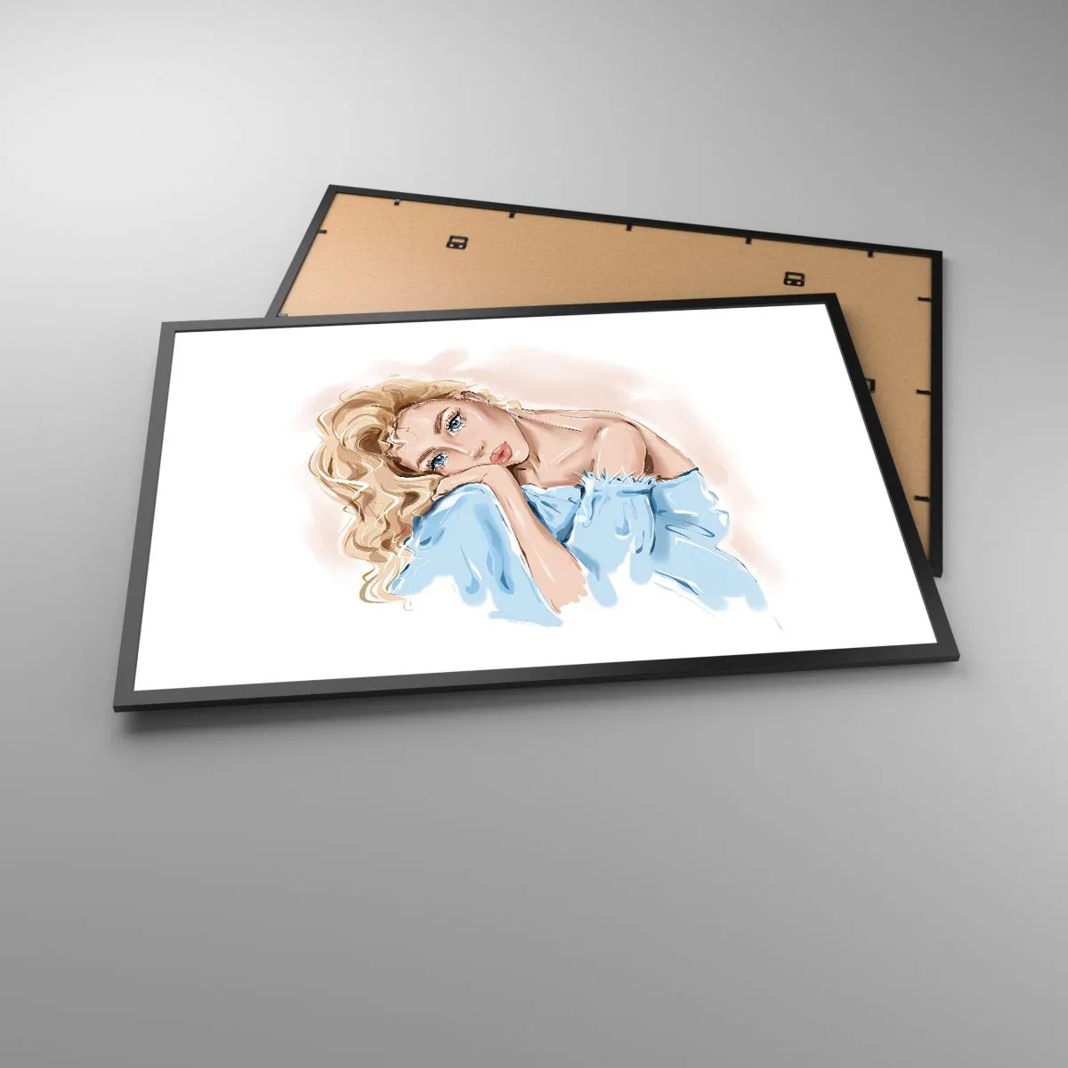 Affiche dans un cadre noir - Poster - Rêveuse en bleu - 91x61 cm