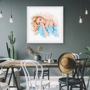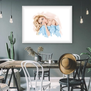 Affiche dans un cadre blanc - Poster - Rêveuse en bleu - 50x70 cm