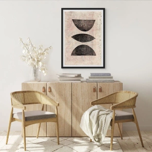 Affiche dans un cadre noir - Poster - Formes ethniques aux tons sombres sur fond clair - 70x50cm - Abstraction ethnique - Décoration murale moderne pour le salon et la chambre ARTTOR