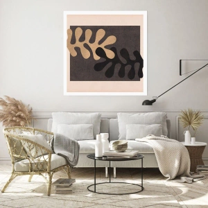 Affiche - Poster - Feuilles abstraites en noir et beige sur un fond rectangulaire - 100x70cm - Absence et complément - Décoration murale moderne pour le salon et la chambre ARTTOR