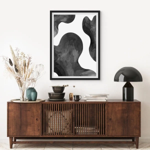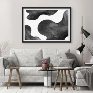 Affiche dans un cadre noir - Poster - Motif abstrait dans les tons de gris et de blanc - 100x70cm - La route du lait - Décoration murale moderne pour le salon et la chambre ARTTOR
