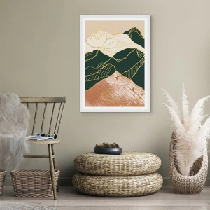 Affiche dans un cadre blanc - Poster - Sommets dorés - 40x50 cm