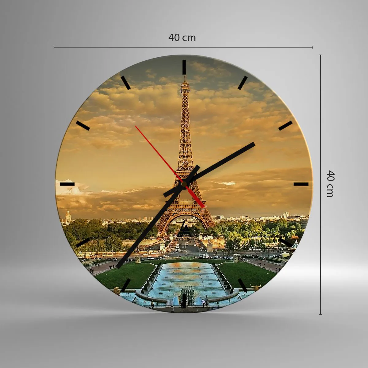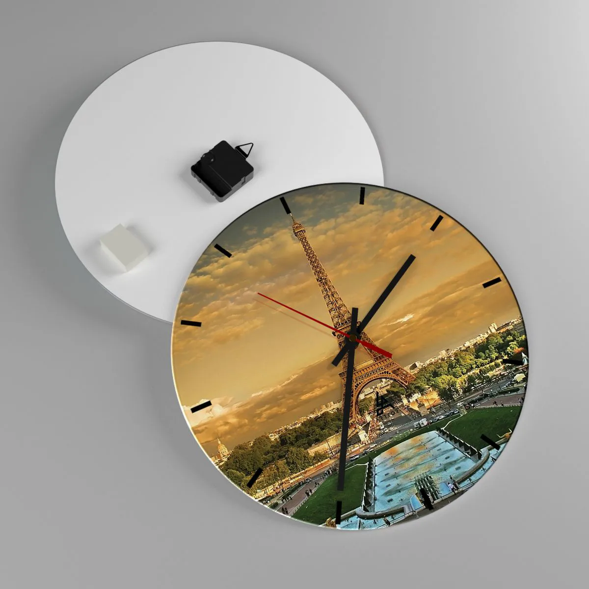 L'horloge est fabriquée à l'aide de technologies d'impression modernes, qui garantissent la préservation des couleurs naturelles et une saturation élevée des couleurs. La production d'horloges sur verre se déroule en plusieurs étapes. Une impression de haute qualité et deux couches de protection thermique liées au verre. Pour cela, nous utilisons la technologie innovante des fours de laminage du verre dans un environnement sous vide.