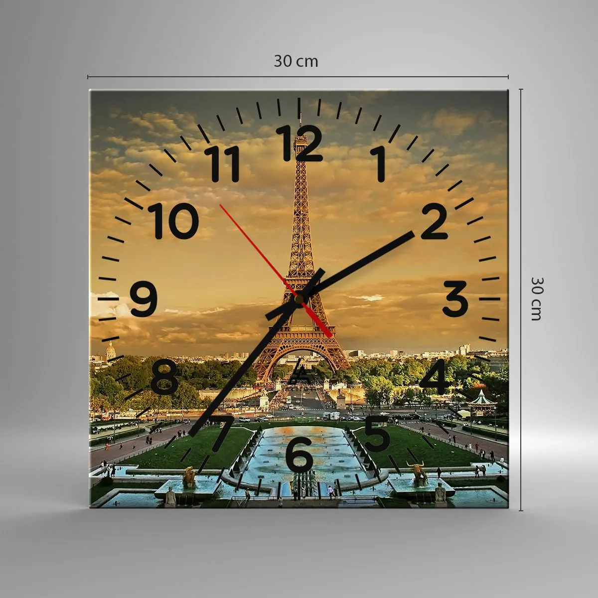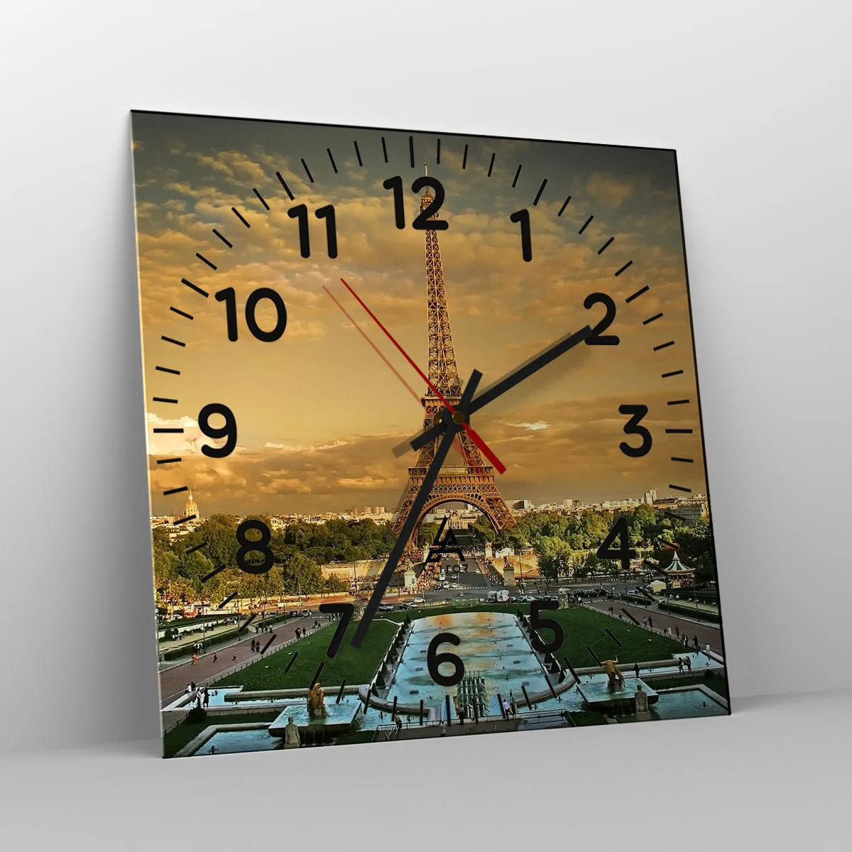 L'horloge est fabriquée à l'aide de technologies d'impression modernes, qui garantissent la préservation des couleurs naturelles et une saturation élevée des couleurs. La production d'horloges sur verre se déroule en plusieurs étapes. Une impression de haute qualité et deux couches de protection thermique liées au verre. Pour cela, nous utilisons la technologie innovante des fours de laminage du verre dans un environnement sous vide.