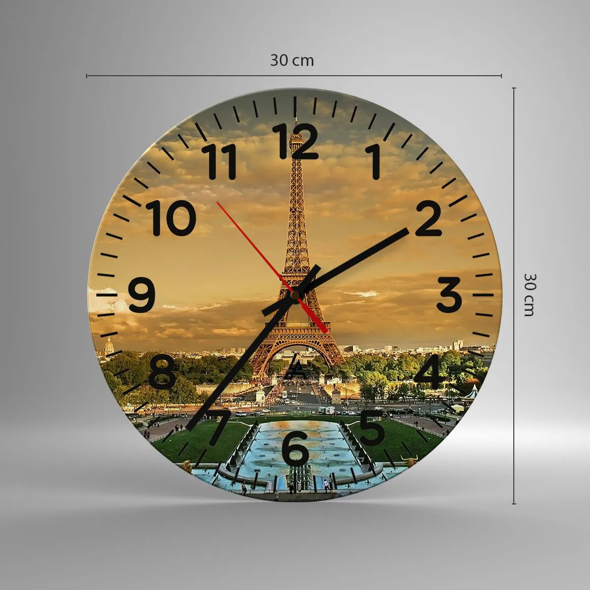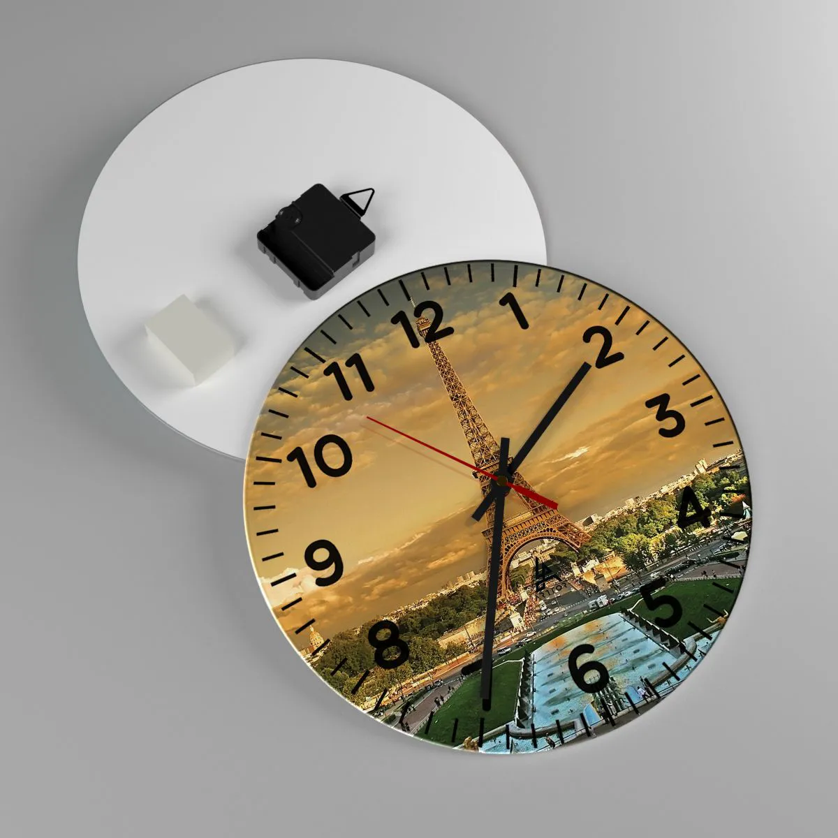 L'horloge est fabriquée à l'aide de technologies d'impression modernes, qui garantissent la préservation des couleurs naturelles et une saturation élevée des couleurs. La production d'horloges sur verre se déroule en plusieurs étapes. Une impression de haute qualité et deux couches de protection thermique liées au verre. Pour cela, nous utilisons la technologie innovante des fours de laminage du verre dans un environnement sous vide.