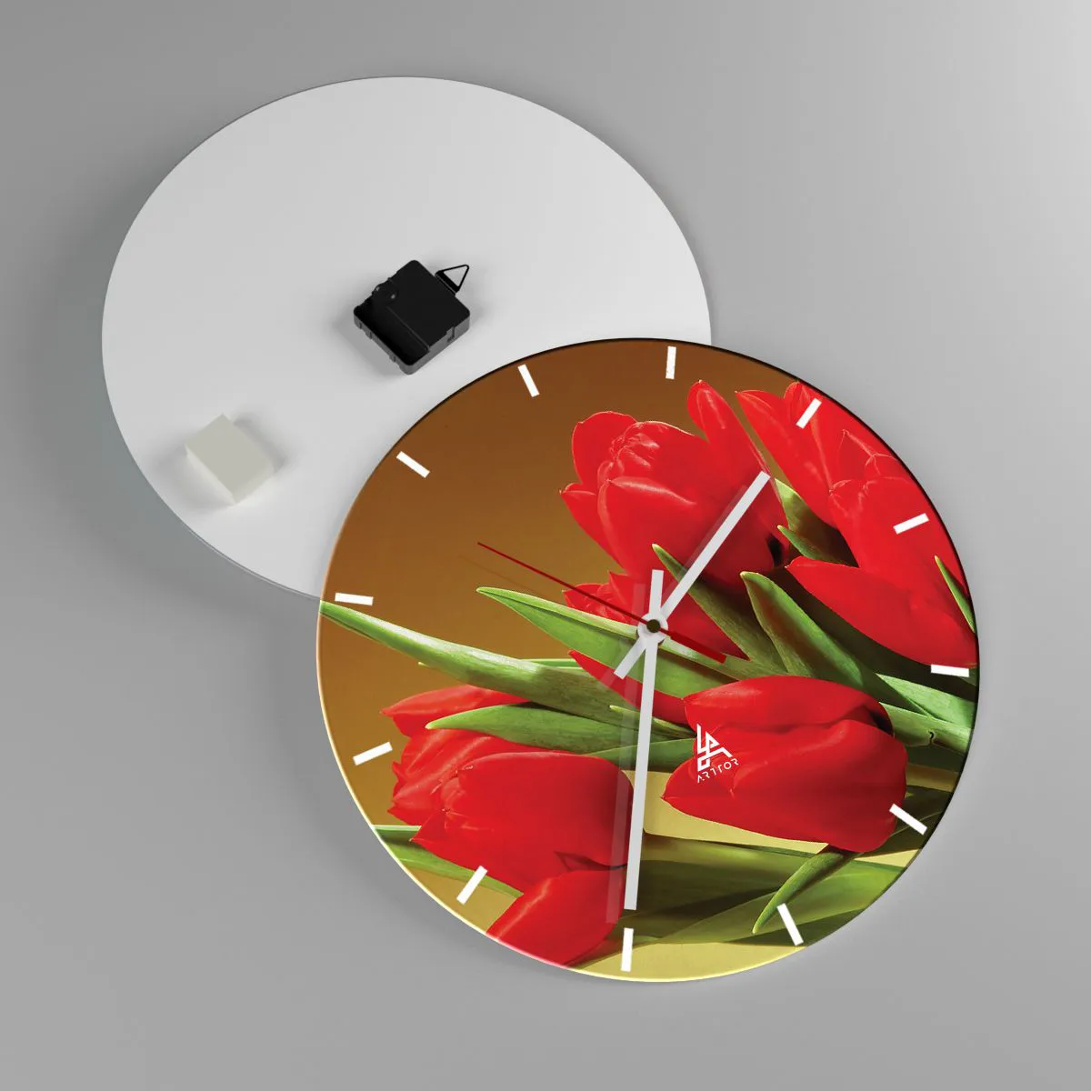 L'horloge est fabriquée à l'aide de technologies d'impression modernes, qui garantissent la préservation des couleurs naturelles et une saturation élevée des couleurs. La production d'horloges sur verre se déroule en plusieurs étapes. Une impression de haute qualité et deux couches de protection thermique liées au verre. Pour cela, nous utilisons la technologie innovante des fours de laminage du verre dans un environnement sous vide.