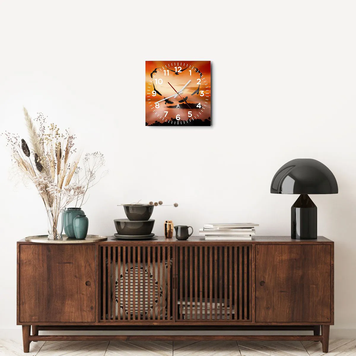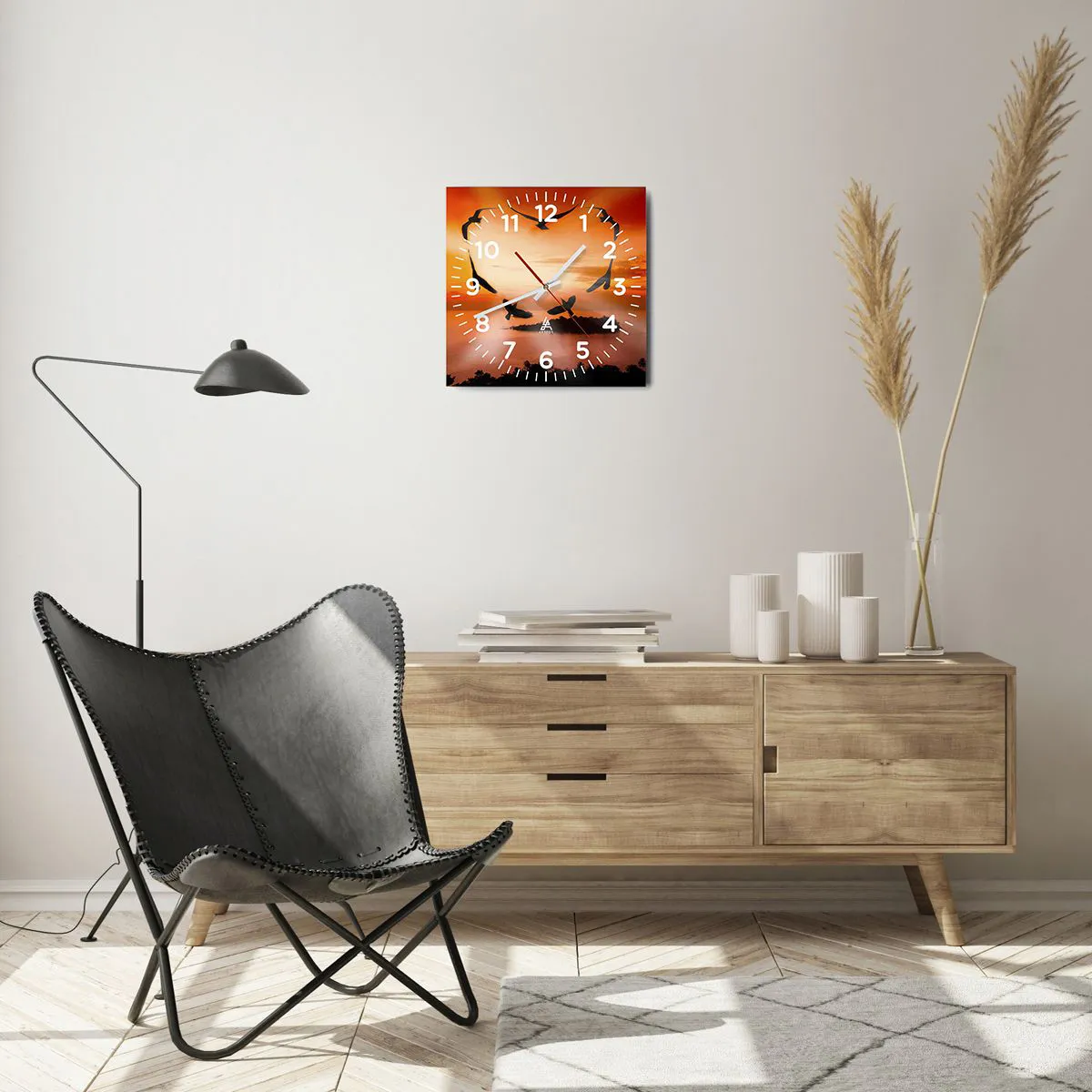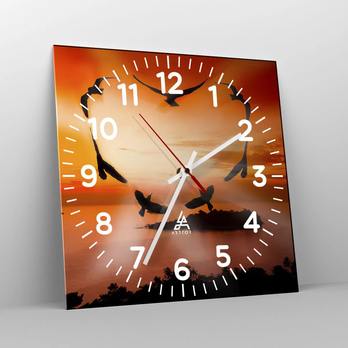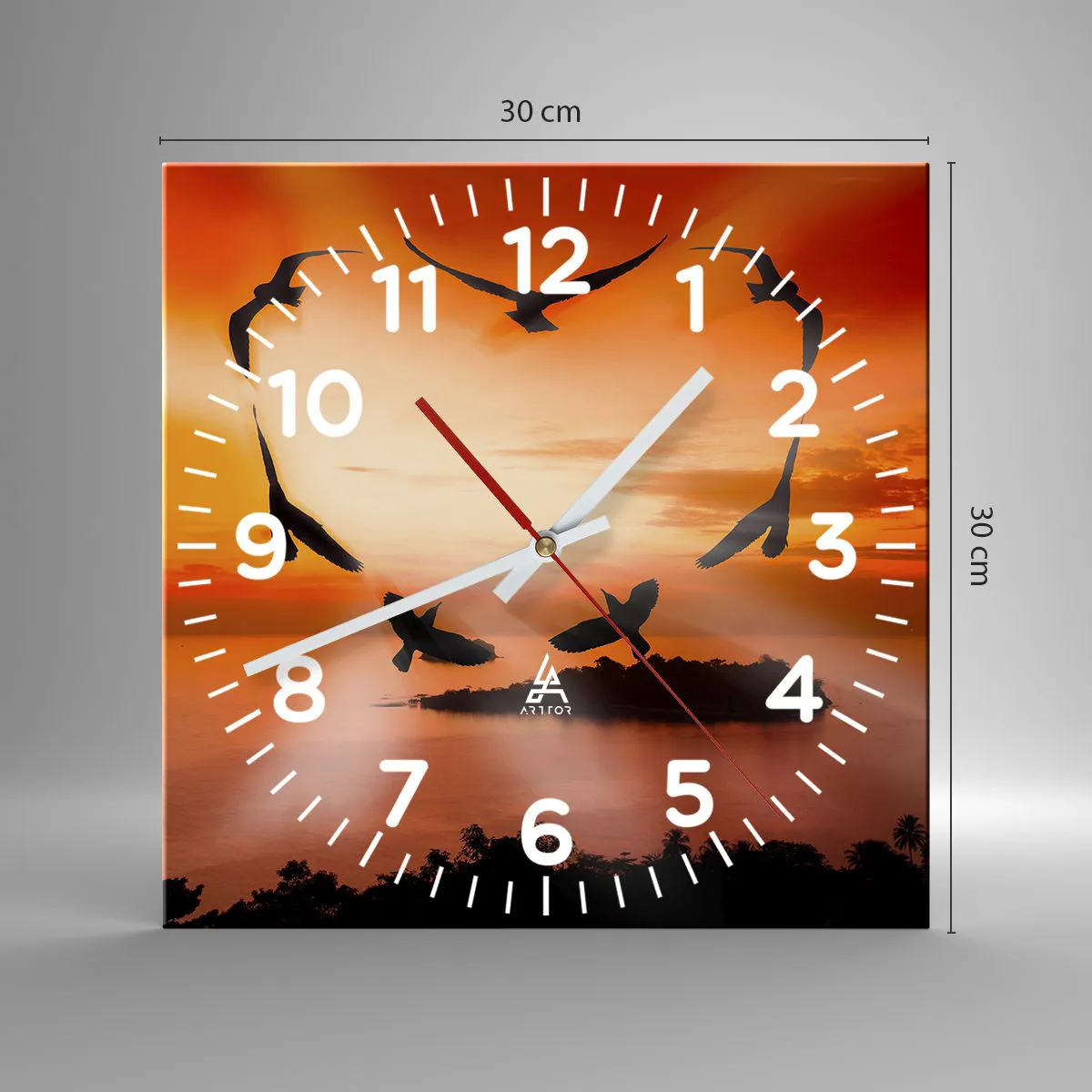 L'horloge est fabriquée à l'aide de technologies d'impression modernes, qui garantissent la préservation des couleurs naturelles et une saturation élevée des couleurs. La production d'horloges sur verre se déroule en plusieurs étapes. Une impression de haute qualité et deux couches de protection thermique liées au verre. Pour cela, nous utilisons la technologie innovante des fours de laminage du verre dans un environnement sous vide.