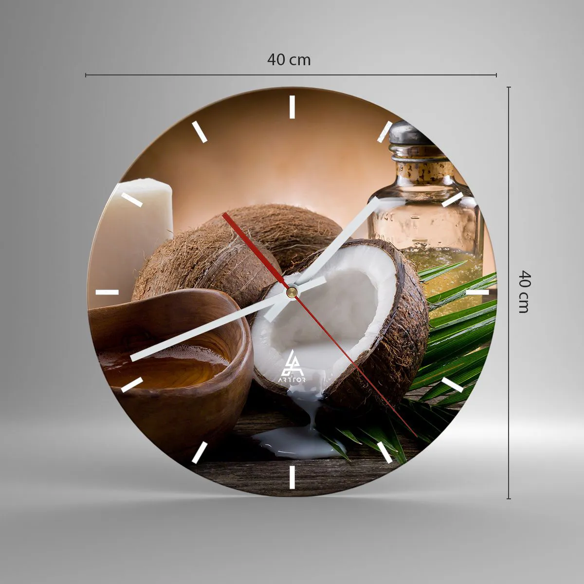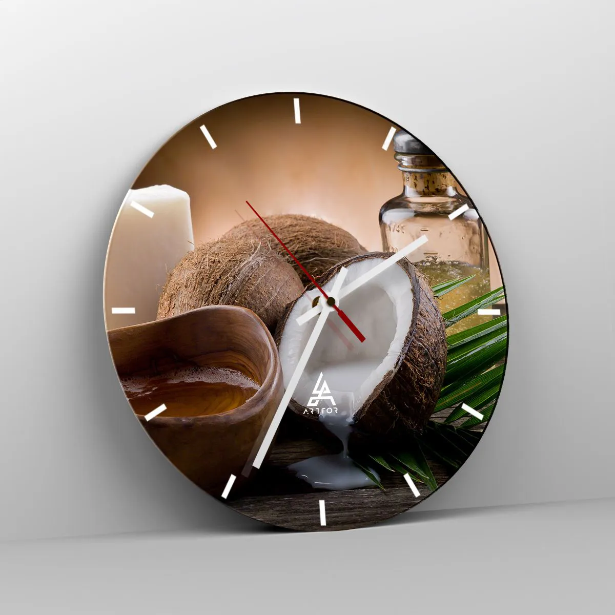 L'horloge est fabriquée à l'aide de technologies d'impression modernes, qui garantissent la préservation des couleurs naturelles et une saturation élevée des couleurs. La production d'horloges sur verre se déroule en plusieurs étapes. Une impression de haute qualité et deux couches de protection thermique liées au verre. Pour cela, nous utilisons la technologie innovante des fours de laminage du verre dans un environnement sous vide.