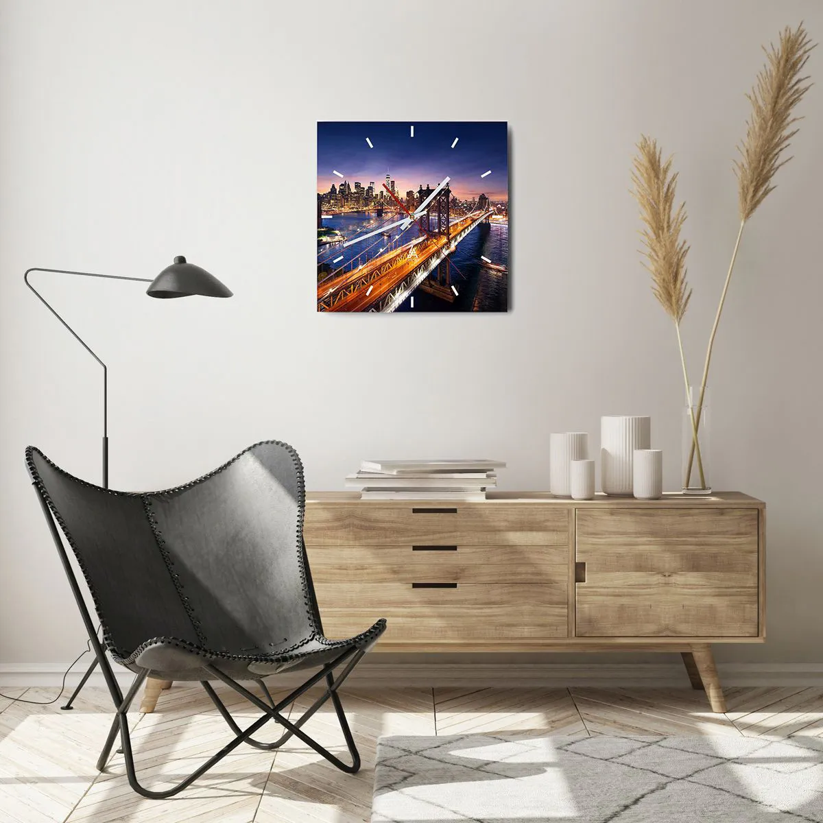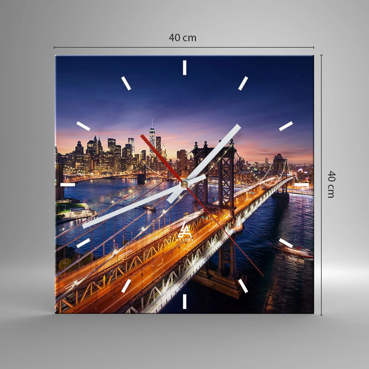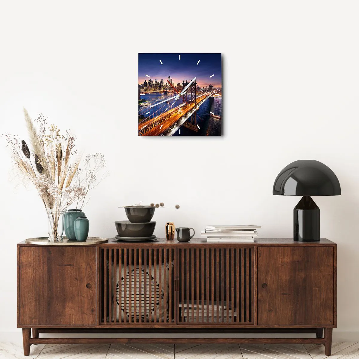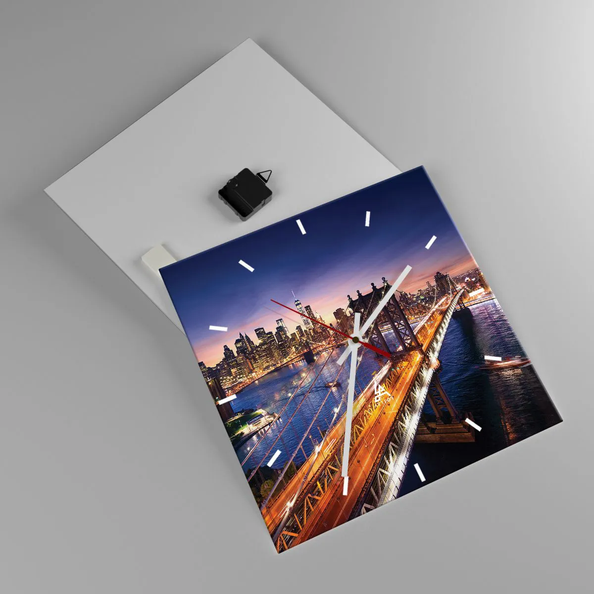 Horloge murale - Pendule murale - Un pont lumineux au cœur de la ville - 40x40 cm