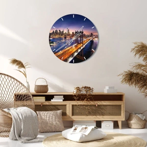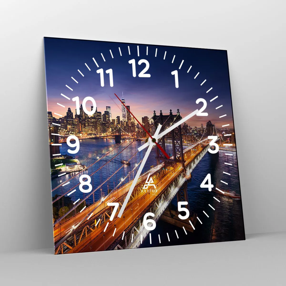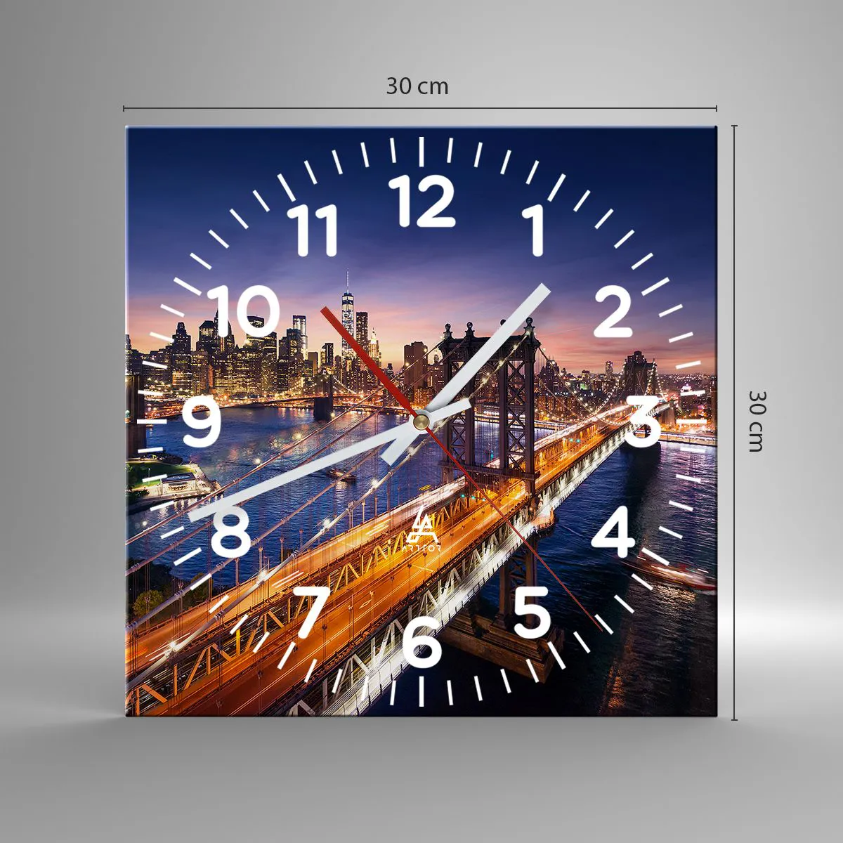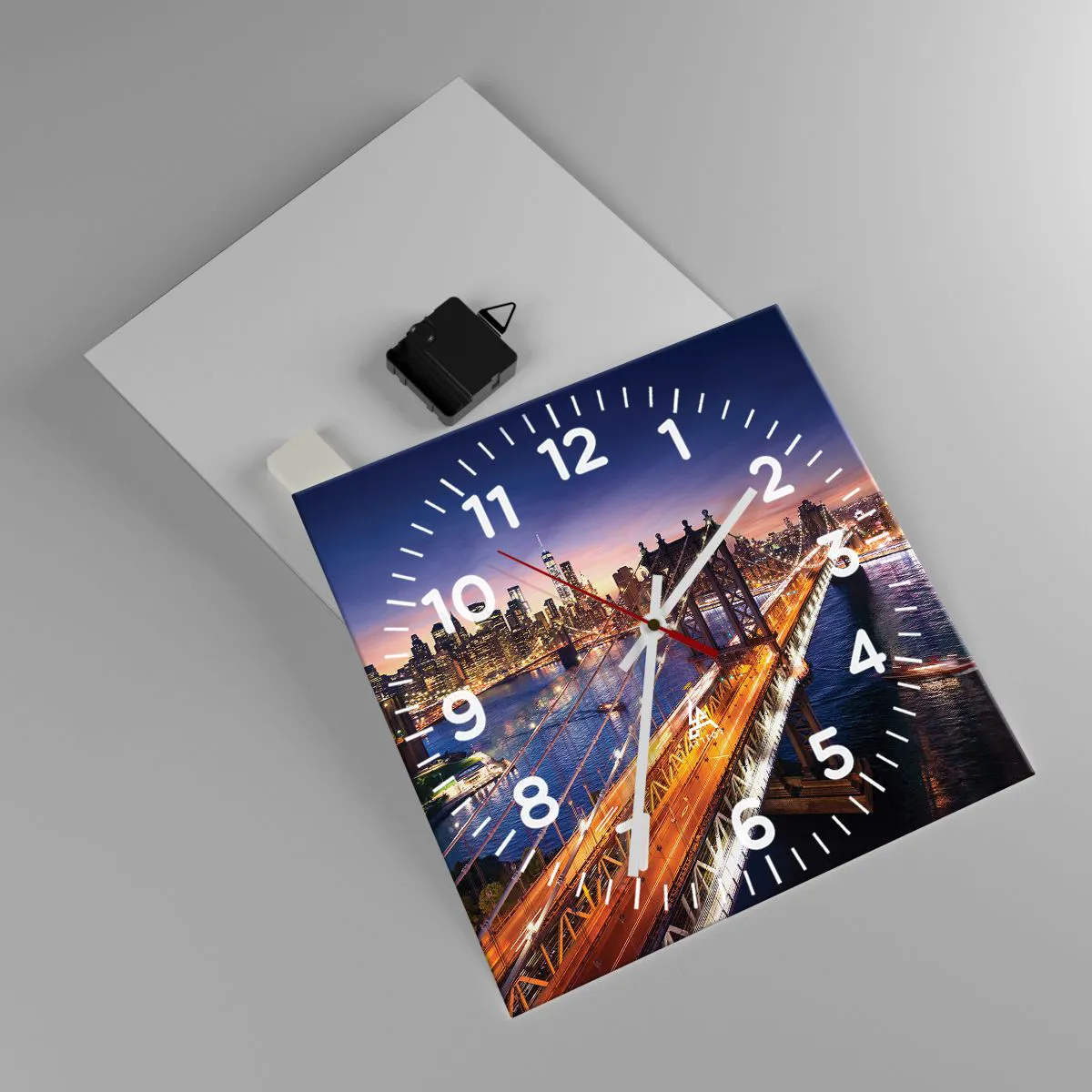 Horloge murale - Pendule murale - Un pont lumineux au cœur de la ville - 30x30 cm