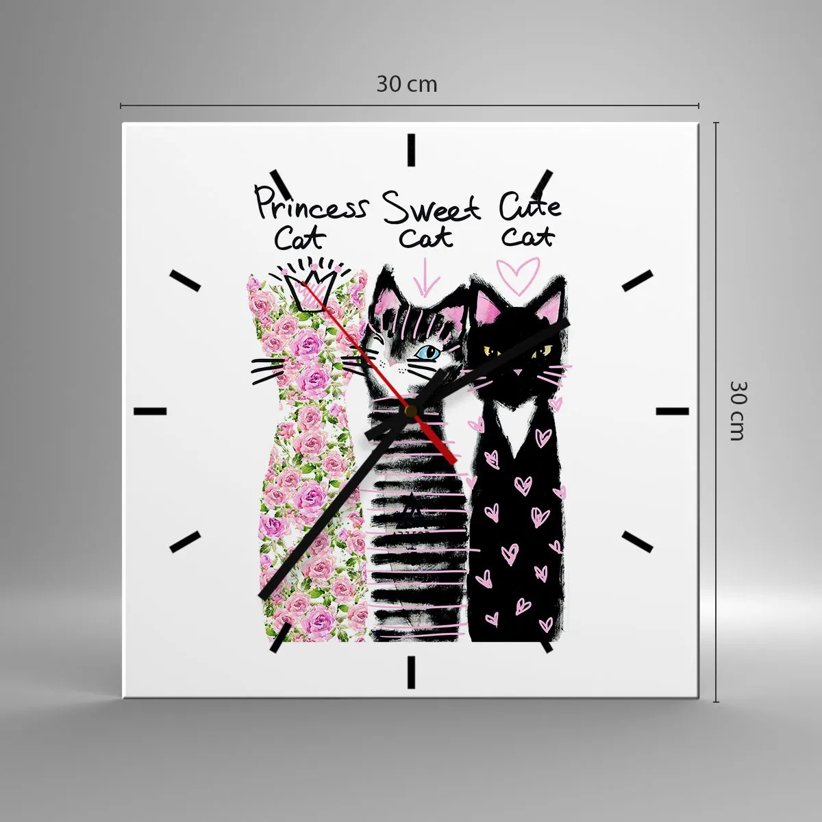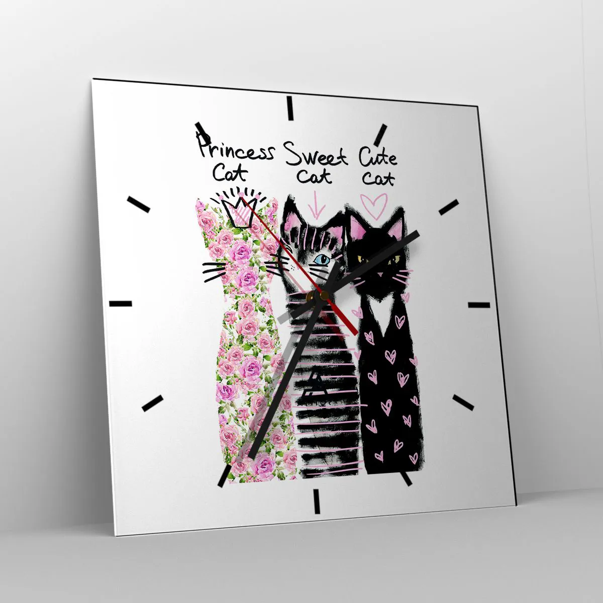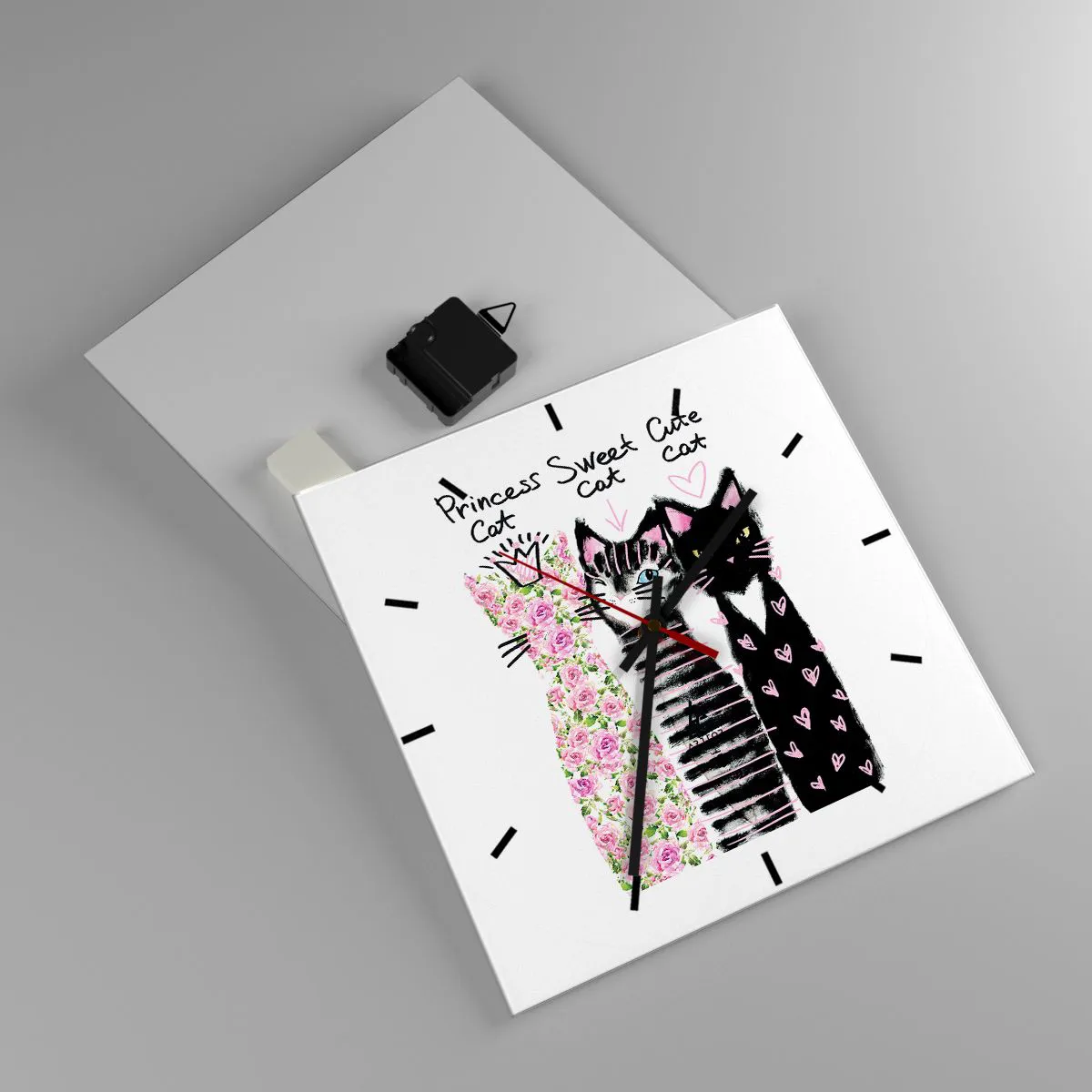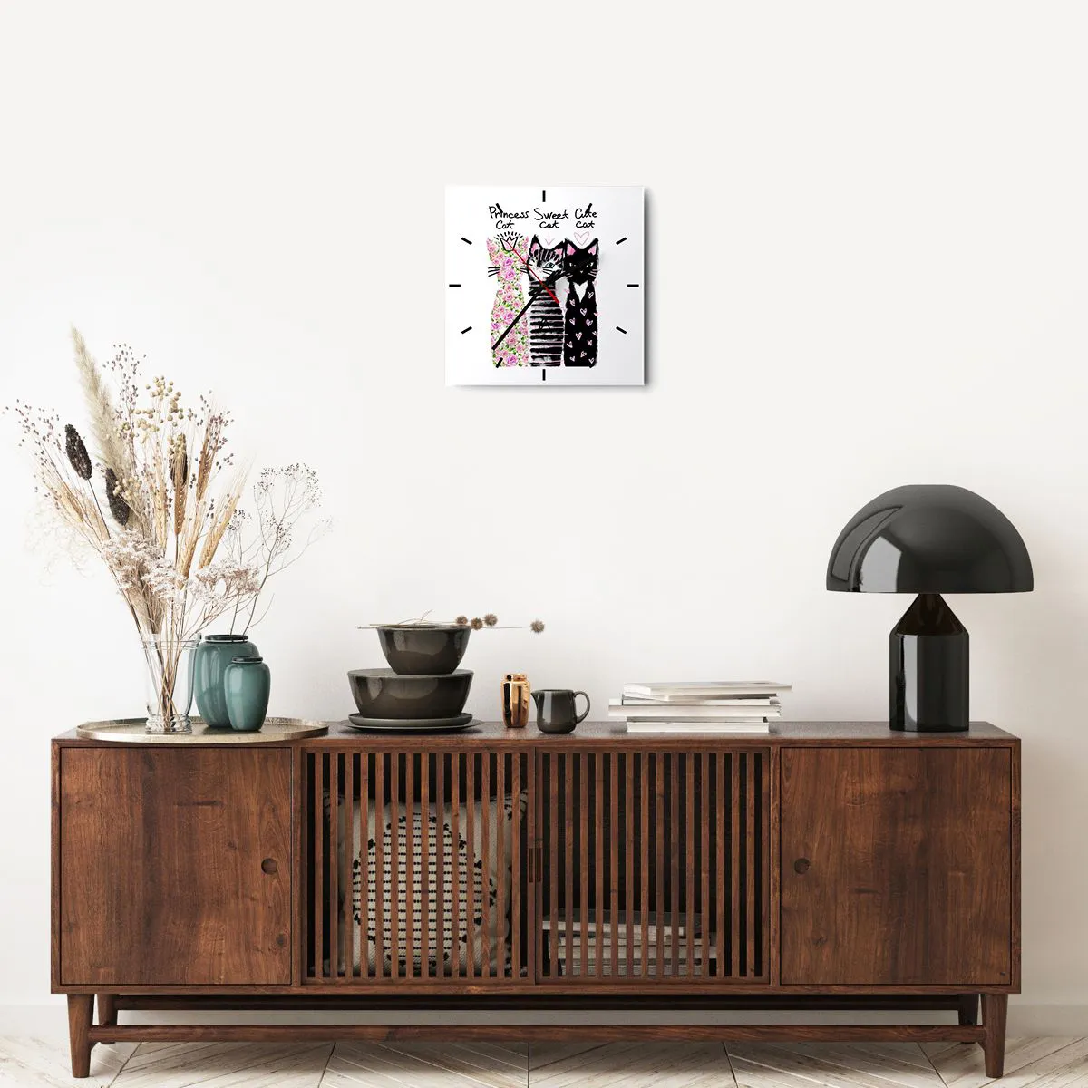 Horloge murale - Pendule murale - Trois chats aux motifs artistiques variés - 30x30cm - Il y avait trois chats - Décoration murale moderne pour le salon et la chambre ARTTOR