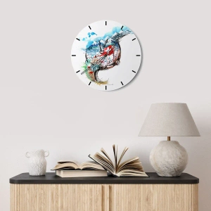L'horloge est fabriquée à l'aide de technologies d'impression modernes, qui garantissent la préservation des couleurs naturelles et une saturation élevée des couleurs. La production d'horloges sur verre se déroule en plusieurs étapes. Une impression de haute qualité et deux couches de protection thermique liées au verre. Pour cela, nous utilisons la technologie innovante des fours de laminage du verre dans un environnement sous vide.