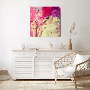 Horloge murale - Pendule murale - Portrait rétro dans une brume rose - 40x40 cm