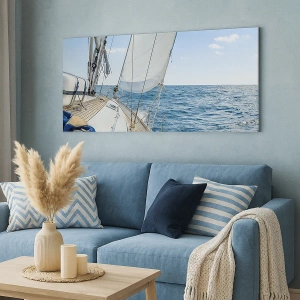 Impression sur toile - Image sur toile - Un voilier sur une mer calme sous un ciel bleu - 160x50cm - Ohé, l'aventure - Décoration murale moderne pour le salon et la chambre ARTTOR