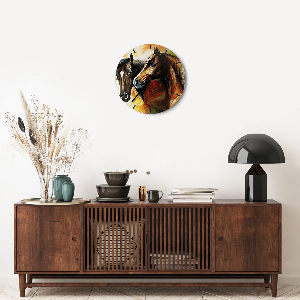 L'horloge est fabriquée à l'aide de technologies d'impression modernes, qui garantissent la préservation des couleurs naturelles et une saturation élevée des couleurs. La production d'horloges sur verre se déroule en plusieurs étapes. Une impression de haute qualité et deux couches de protection thermique liées au verre. Pour cela, nous utilisons la technologie innovante des fours de laminage du verre dans un environnement sous vide.