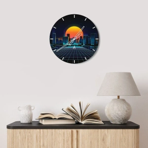 Horloge murale - Pendule murale - Horizon urbain futuriste de style néon - 30x30cm - Vous voulez toujours passer au réel ? - Décoration murale moderne pour le salon et la chambre ARTTOR