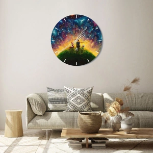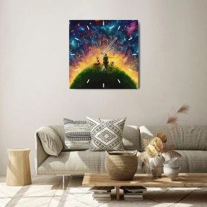 Horloge murale - Pendule murale - Personnages sur une colline verdoyante entourée d'un ciel étoilé - 30x30cm - Amour et amitié - le monde entier - Décoration murale moderne pour le salon et la chambre ARTTOR