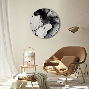 Horloge murale - Pendule murale - Profil noir et blanc d'une femme faisant un geste de silence - 30x30cm - A l'écoute d'elle-même - Décoration murale moderne pour le salon et la chambre ARTTOR