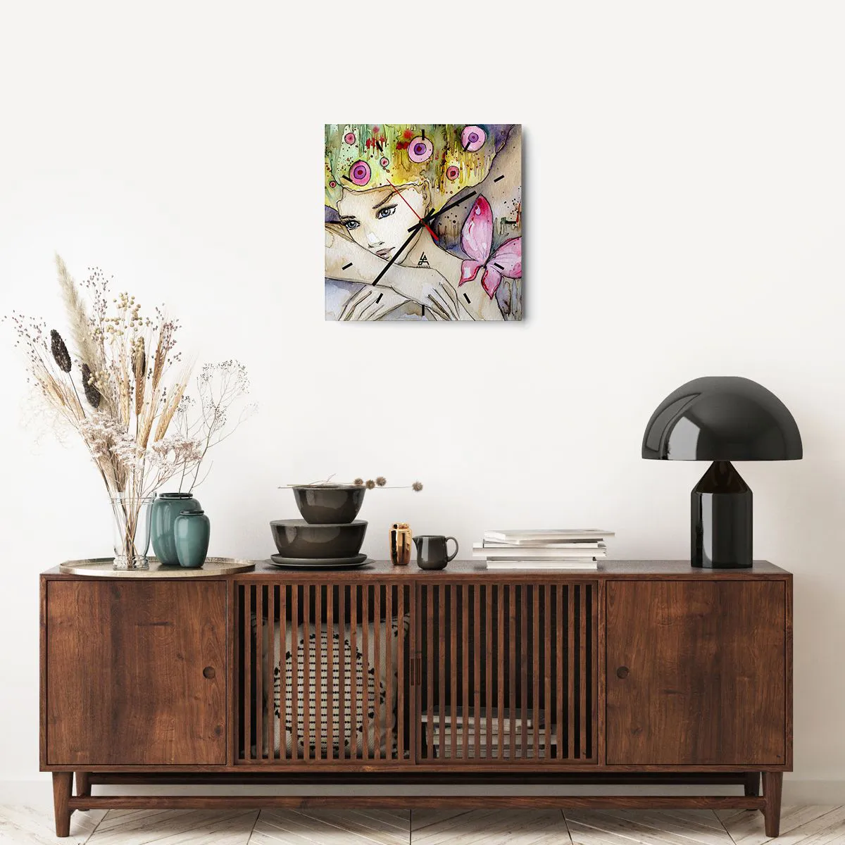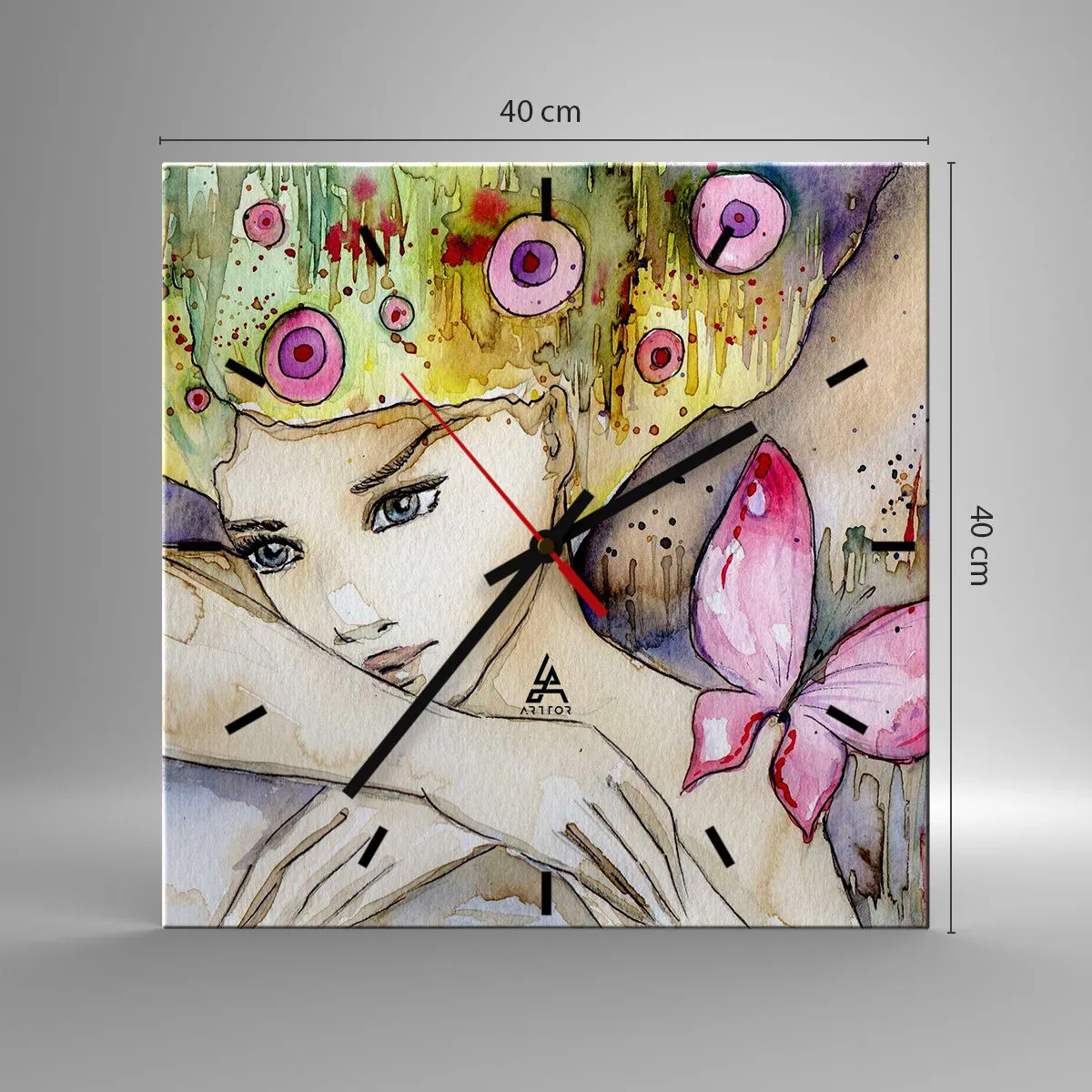 Horloge murale - Pendule murale - La princesse papillon - 40x40 cm