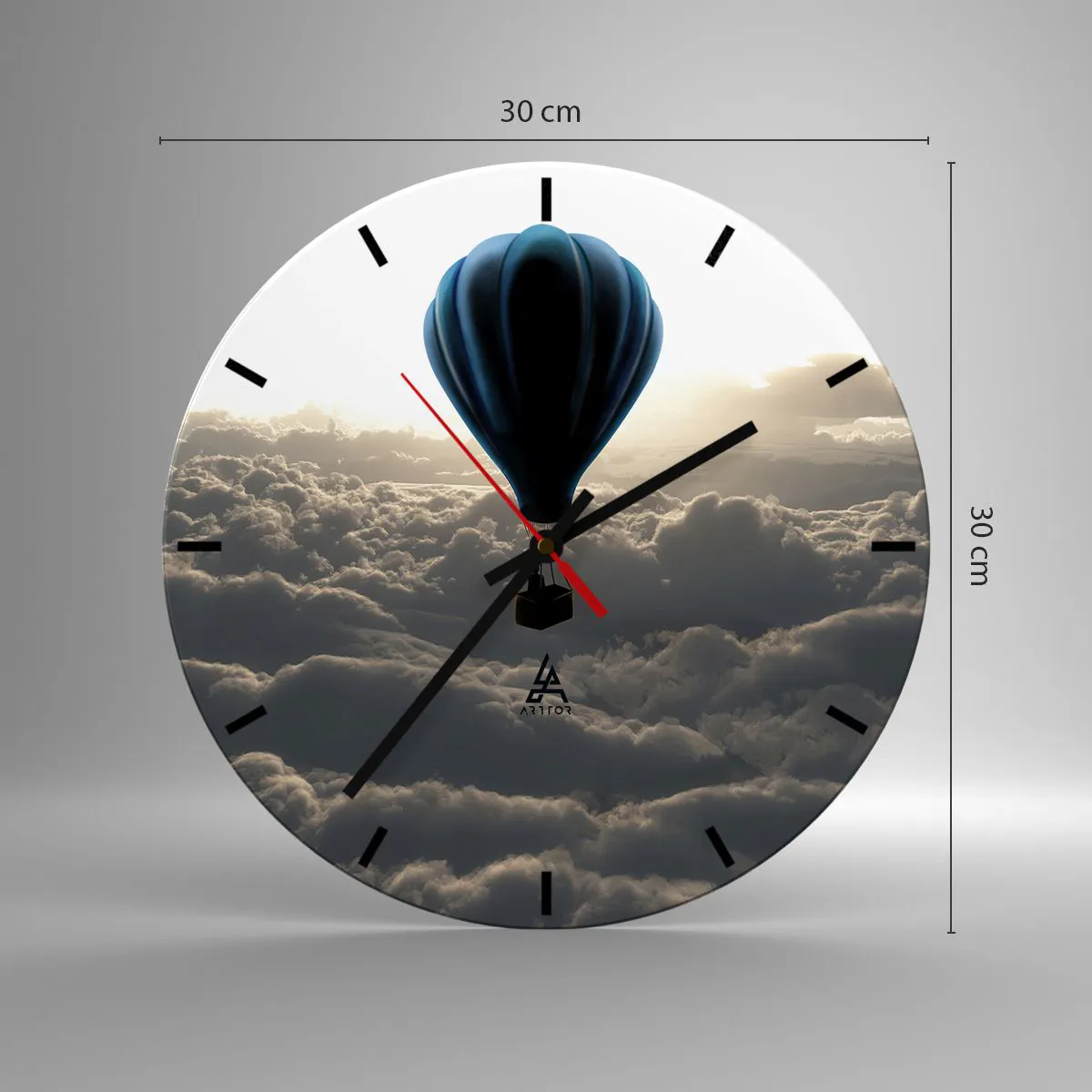 Horloge murale - Pendule murale - Une montgolfière s'élève au-dessus des nuages au lever du soleil. - 30x30cm - Un vagabond au dessus des nuages - Décoration murale moderne pour le salon, la cuisine et la chambre ARTTOR