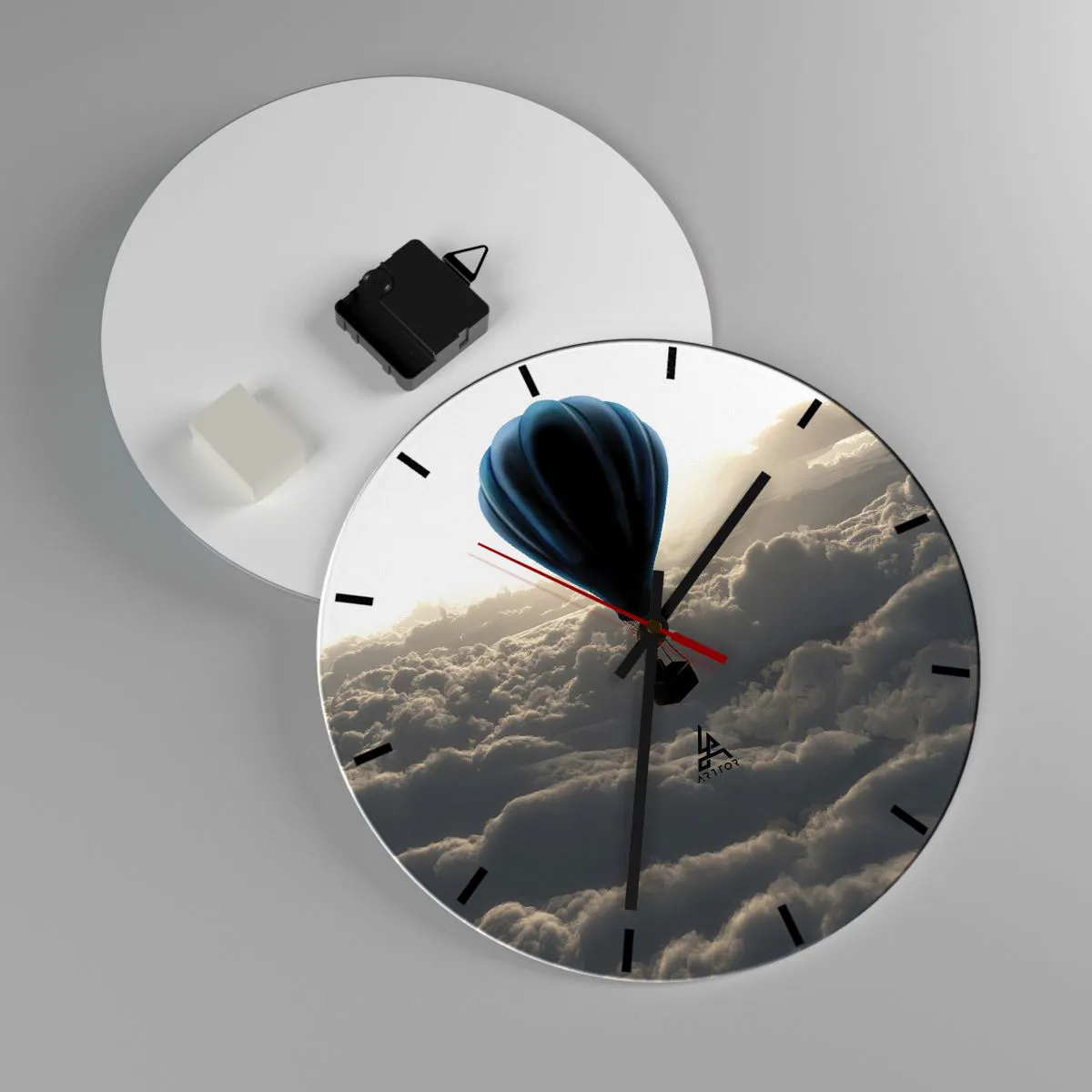 - Une horloge murale représentant une montgolfière planant au-dessus des nuages. Le complément idéal pour un intérieur harmonieux et inspirant.