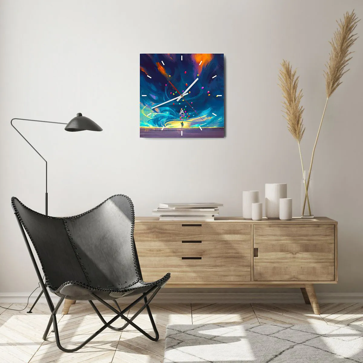 L'horloge est fabriquée en verre durable de 4 mm d'épaisseur. Le verre conserve les couleurs naturelles de l'impression