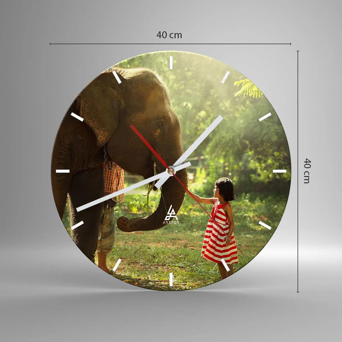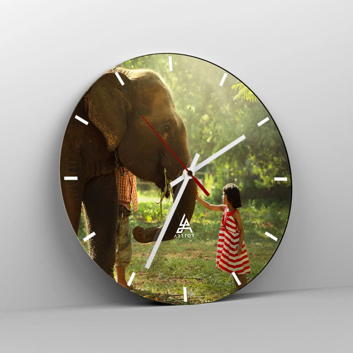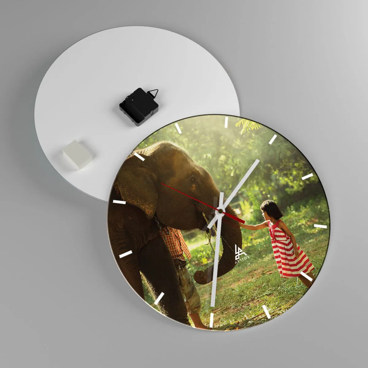 • Animaux, Éléphant, Fille, Afrique, Personnes, Nature, Voyage, Animaux, Pour le bureau, Pour le bureau, Pour la salle à manger, Pour le hall, Pour le salon, Pour la chambre, Gris, Rond