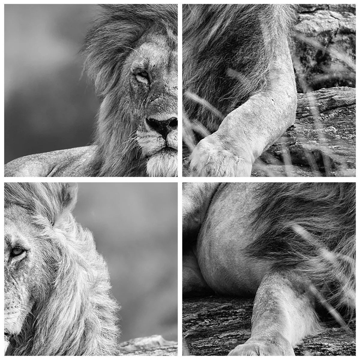 • Lion, Animaux, Nature, Afrique, Noir et blanc, Nature, Animaux, Pour le bureau, Pour le bureau, Pour la salle à manger, Pour le hall, Pour le salon, Pour la chambre, Gris, Noir et blanc, Carré