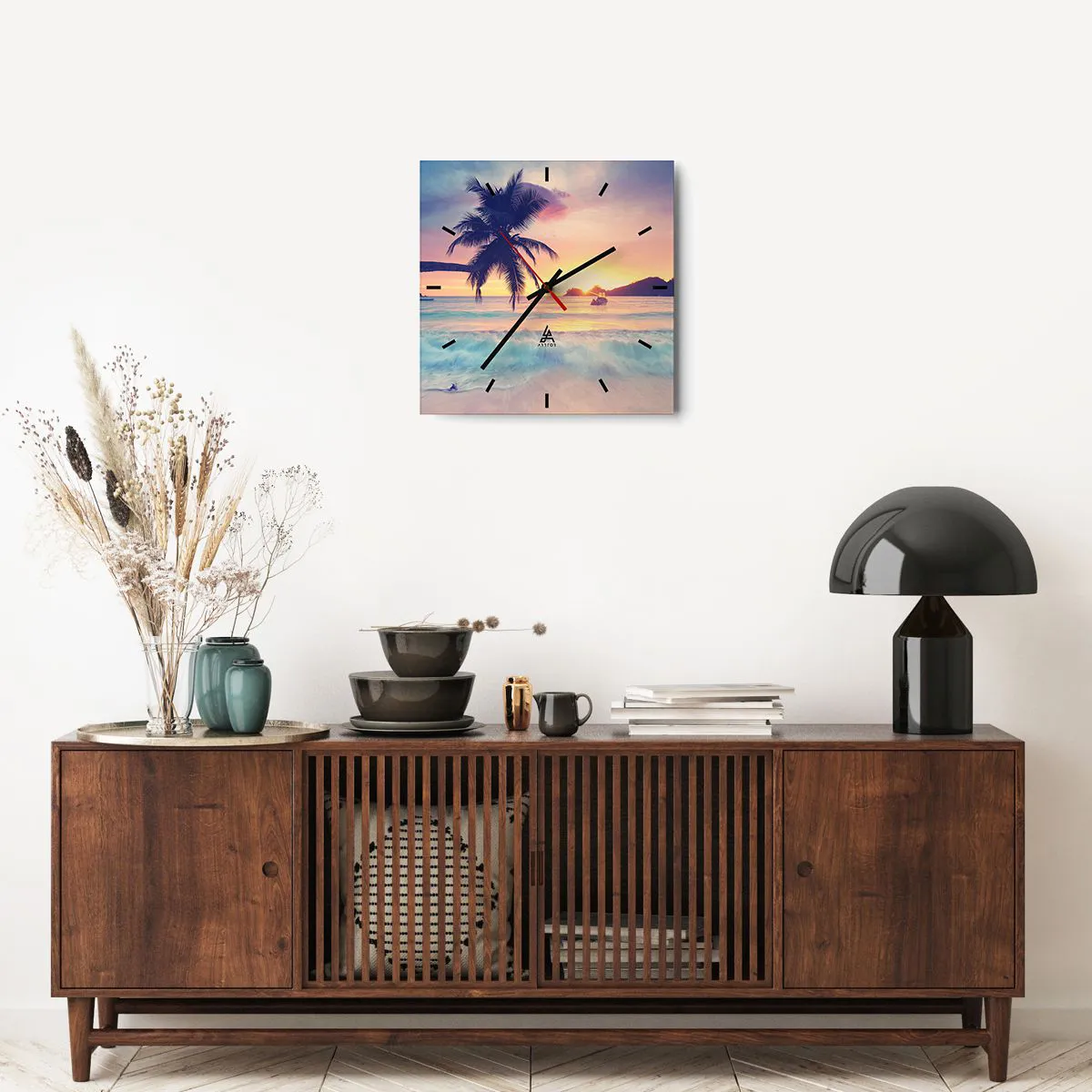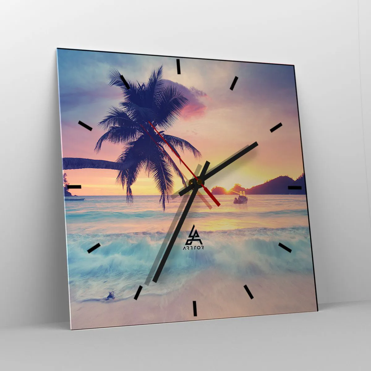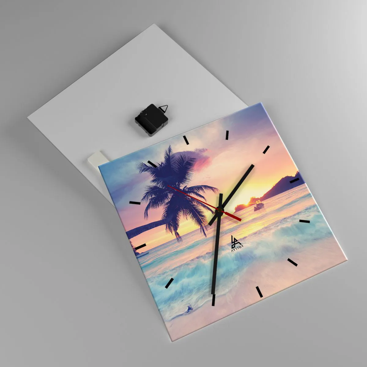 L'horloge est fabriquée à l'aide de technologies d'impression modernes, qui garantissent la préservation des couleurs naturelles et une saturation élevée des couleurs. La production d'horloges sur verre se déroule en plusieurs étapes. Une impression de haute qualité et deux couches de protection thermique liées au verre. Pour cela, nous utilisons la technologie innovante des fours de laminage du verre dans un environnement sous vide.