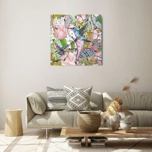 Horloge murale - Pendule murale - Colibris et papillons colorés parmi les plantes - 30x30cm - Empêtré dans les vignes - Décoration murale moderne pour le salon et la chambre ARTTOR