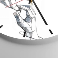 L'horloge est produite avec un verre de sécurité de 4 mm d'épaisseur. La technologie de fabrication de l'horloge est conforme à la classe de sécurité 2B2 selon la norme PN-EN 12600 : 2004, qui garantit la résistance aux chocs. L'horloge en verre est prête à être accrochée - elle a une attache en métal attaché à l'arrière et une entretoise en mousse régulant la distance uniformément de l'horloge par rapport au mur. L'horloge a un mécanisme flottant silencieux alimenté par une pile 1.5V - pile AA (pile non incluse).