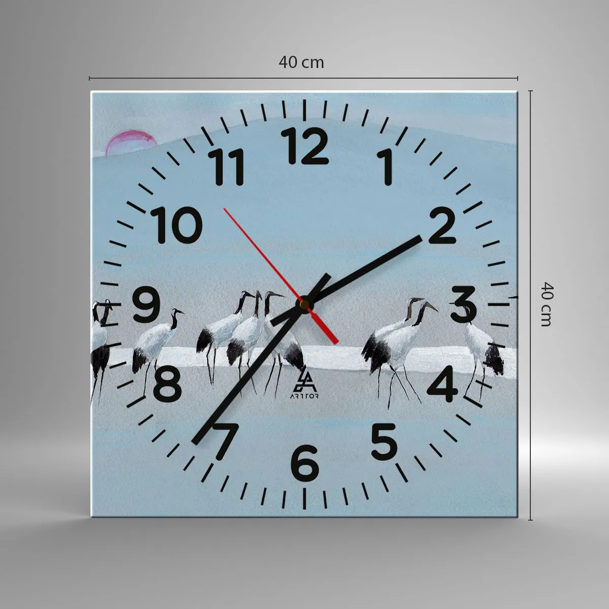 L'horloge est fabriquée à l'aide de technologies d'impression modernes, qui garantissent la préservation des couleurs naturelles et une saturation élevée des couleurs. La production d'horloges sur verre se déroule en plusieurs étapes. Une impression de haute qualité et deux couches de protection thermique liées au verre. Pour cela, nous utilisons la technologie innovante des fours de laminage du verre dans un environnement sous vide.