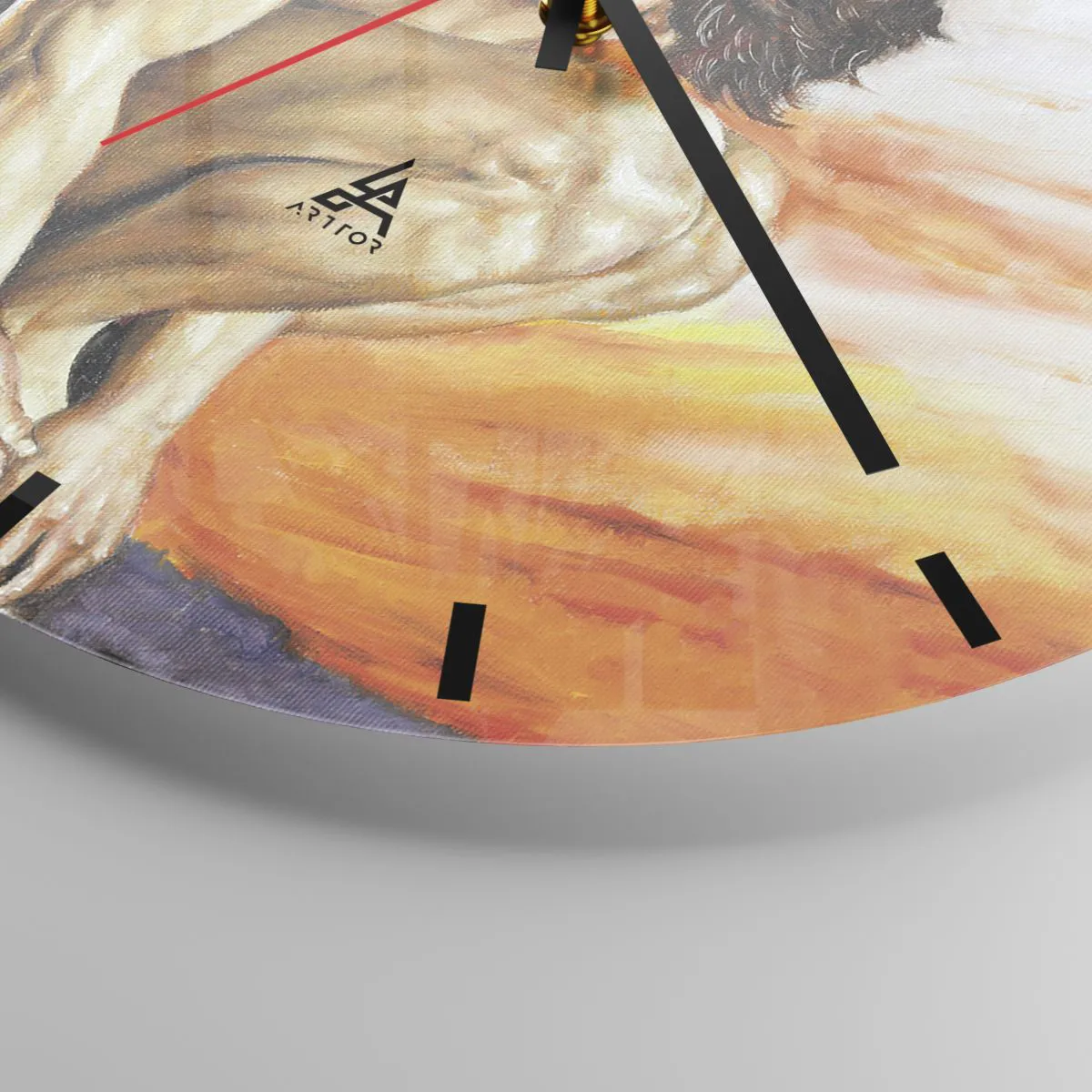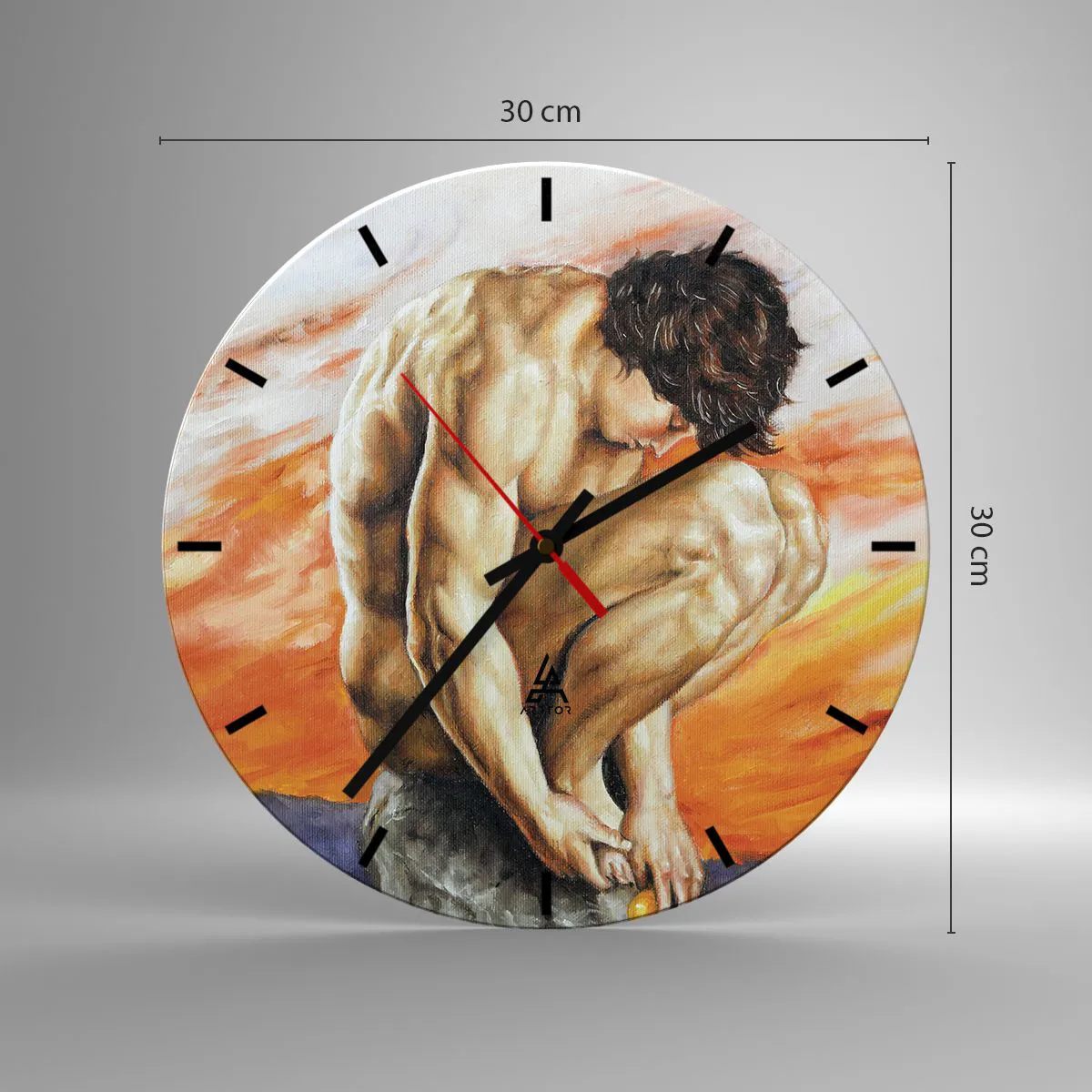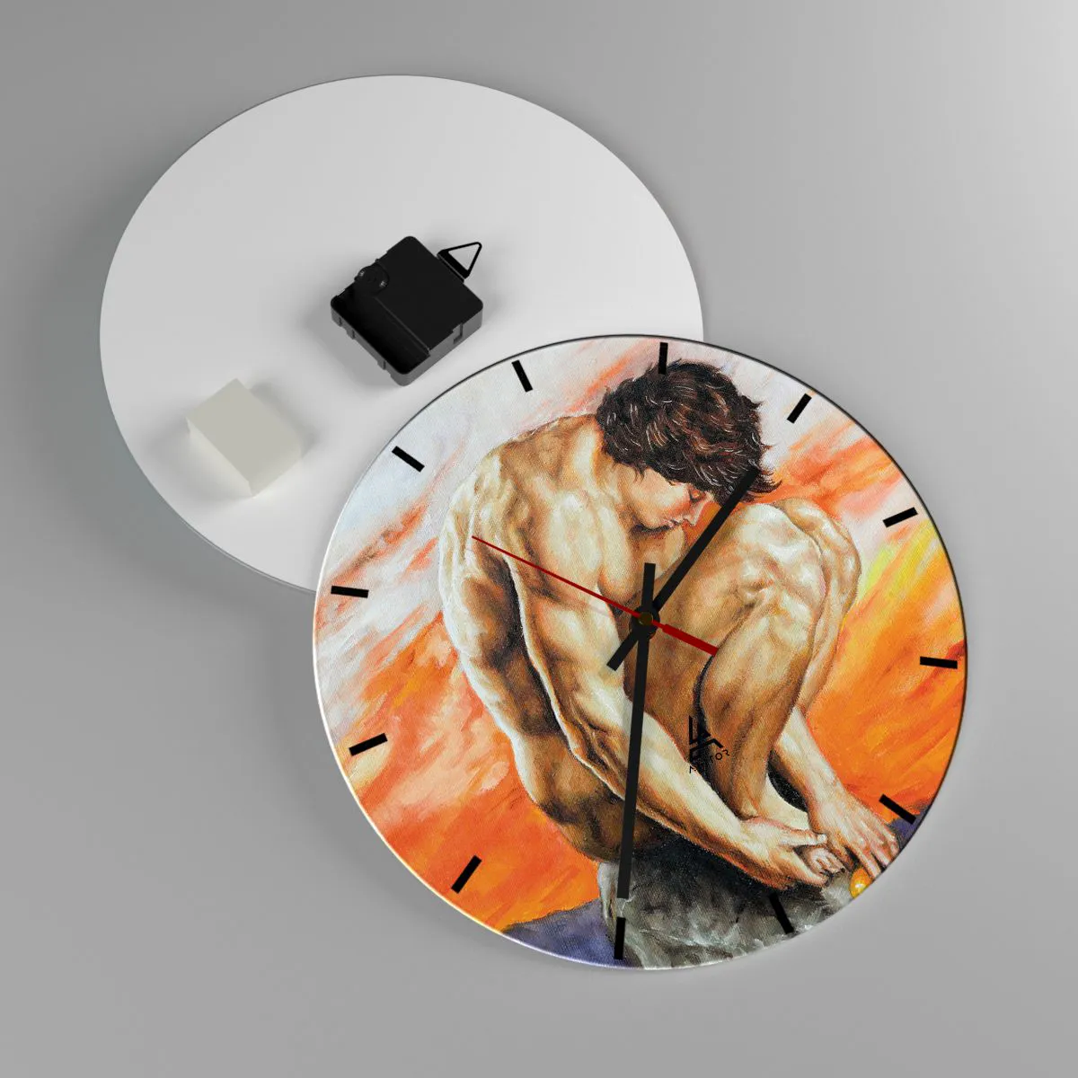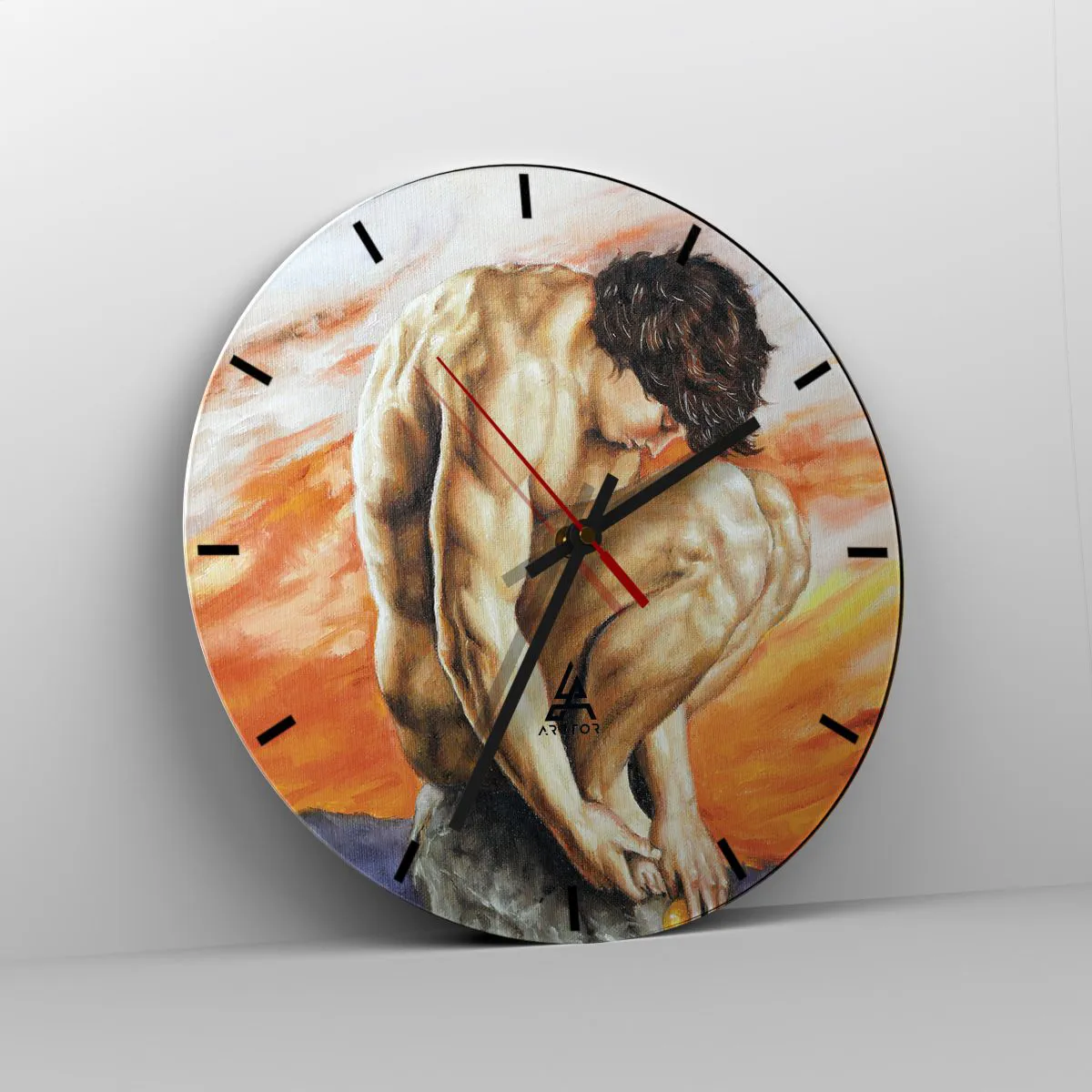 Horloge murale - Immersed in Himself - Figure masculine dans une pose artistique sur fond de coucher de soleil