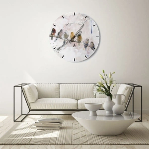 Horloge murale - Rencontre ailée - Oiseaux aquarelles perchés sur une branche