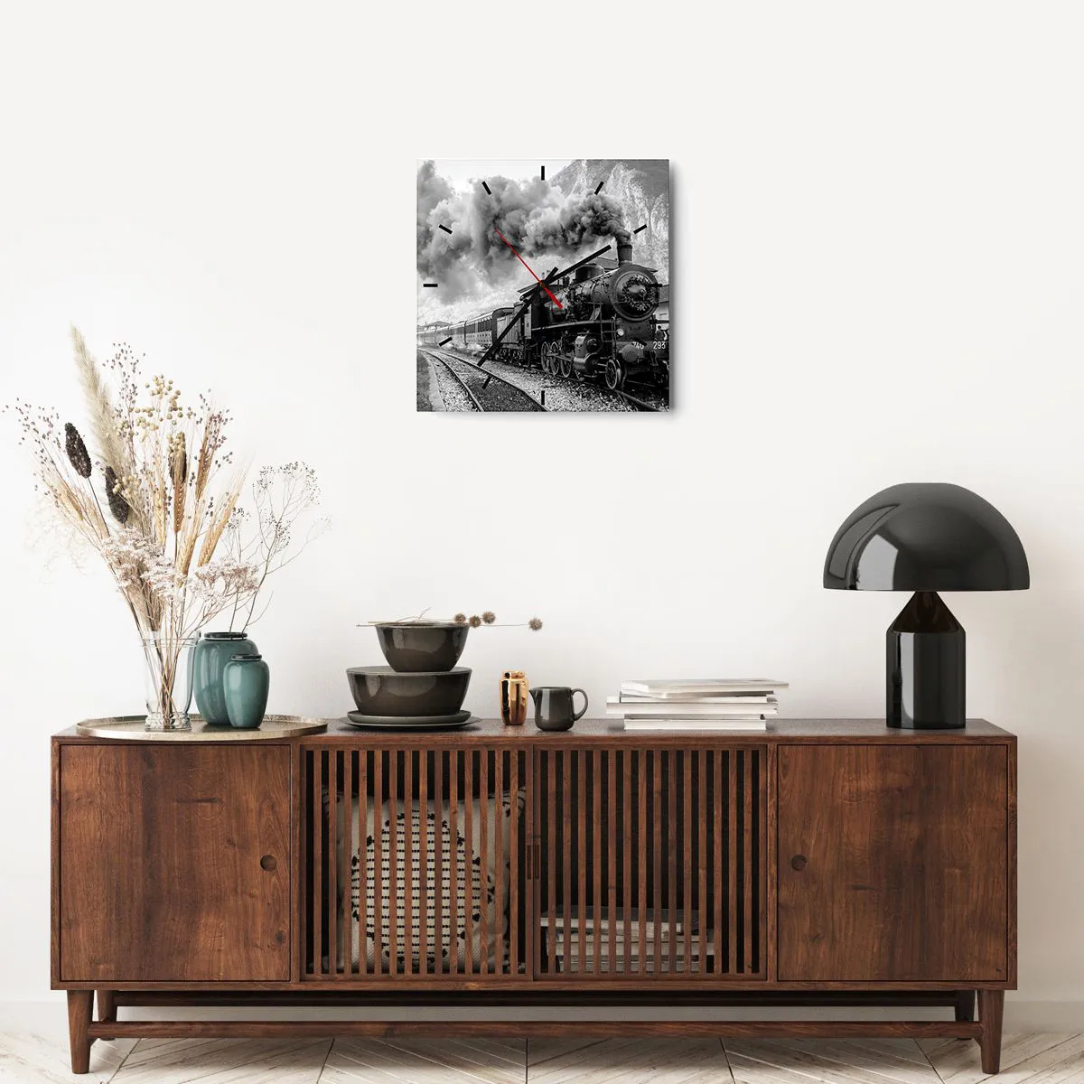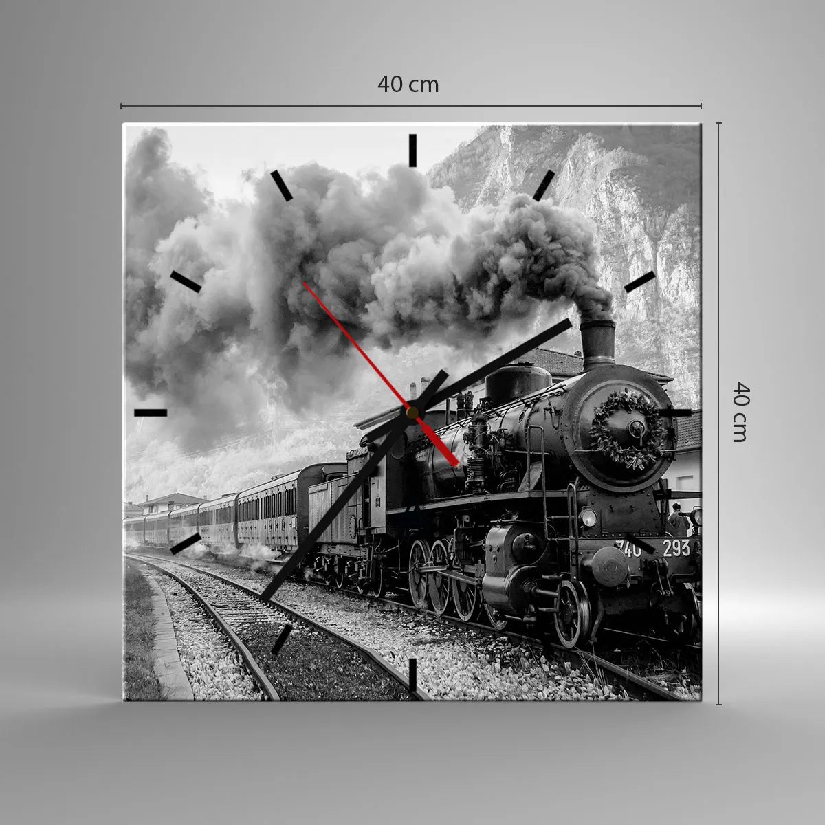 L'horloge est fabriquée à l'aide de technologies d'impression modernes, qui garantissent la préservation des couleurs naturelles et une saturation élevée des couleurs. La production d'horloges sur verre se déroule en plusieurs étapes. Une impression de haute qualité et deux couches de protection thermique liées au verre. Pour cela, nous utilisons la technologie innovante des fours de laminage du verre dans un environnement sous vide.