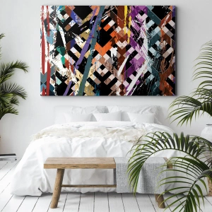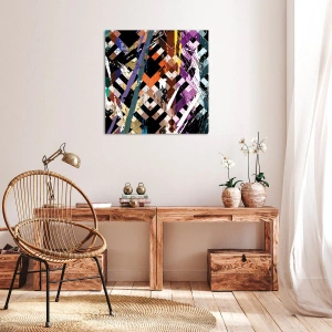 Impression sur toile - Image sur toile - Composition abstraite avec des lignes colorées sur fond noir - 120x80cm - Se mettre au carré - Décoration murale moderne pour le salon et la chambre ARTTOR