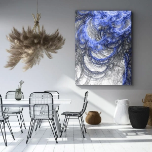 Impression sur toile - Image sur toile - Vagues abstraites dans des tons de bleu et de gris - 140x50cm - La naissance d'une vague - Décoration murale moderne pour le salon et la chambre ARTTOR