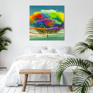- Ce tableau représente une silhouette enfumée colorée sur fond d'arbre en pleine nature. Une composition artistique et inspirante qui apporte imagination et magie à votre intérieur.