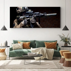 Impression sur toile - Efficace Mortel - Soldat en tenue complète avec un fusil