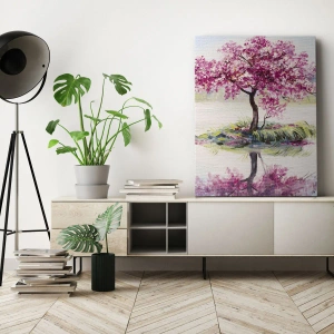 Arbre en fleurs sur eau calme est également une idée cadeau idéale pour les amoureux de la nature et de l'art. Cette œuvre d'art inspire, apporte paix et harmonie et souligne le caractère unique de chaque intérieur.